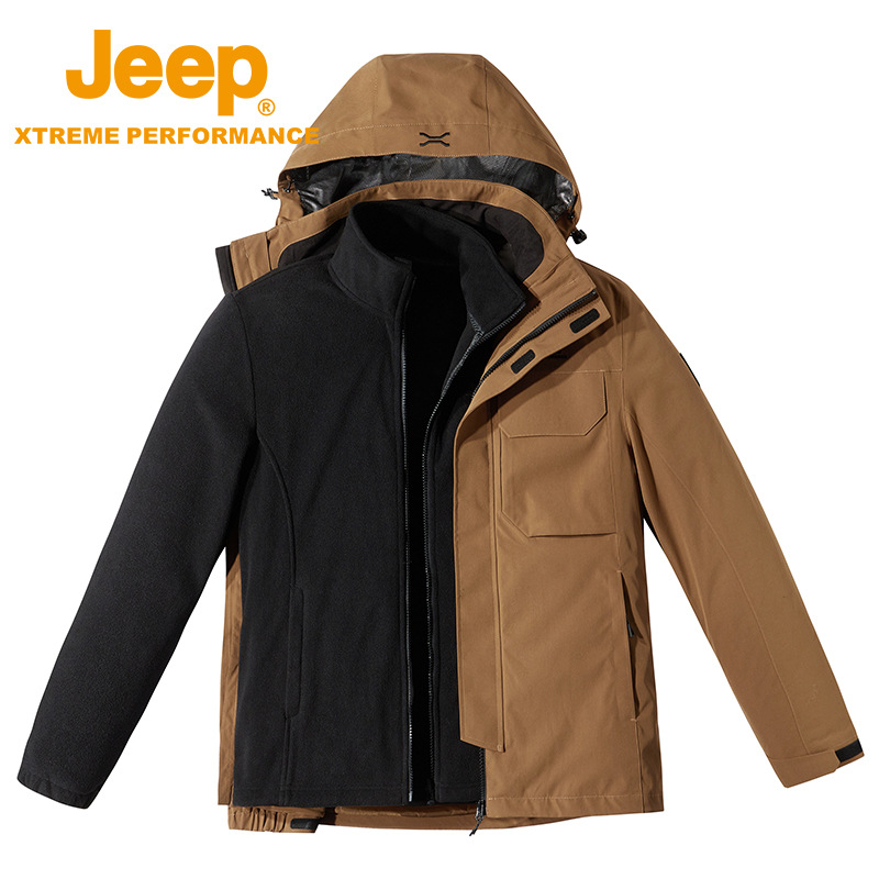 JEEP 三合一防风防水冬季冲锋衣外套男潮牌可拆卸抓绒两件套秋冬新J232094083