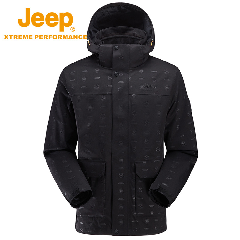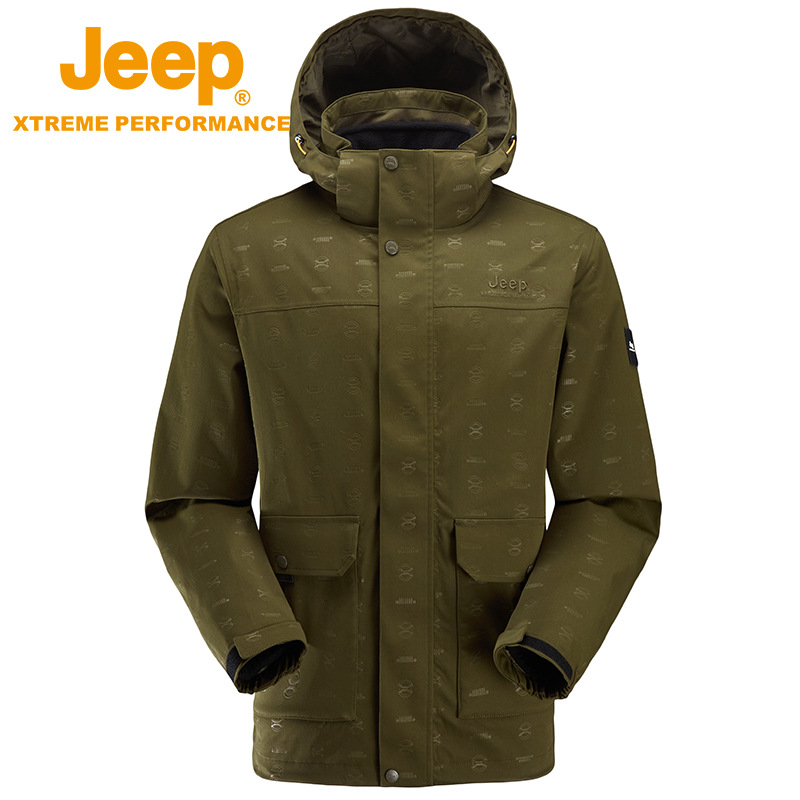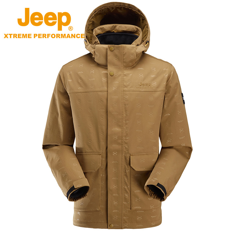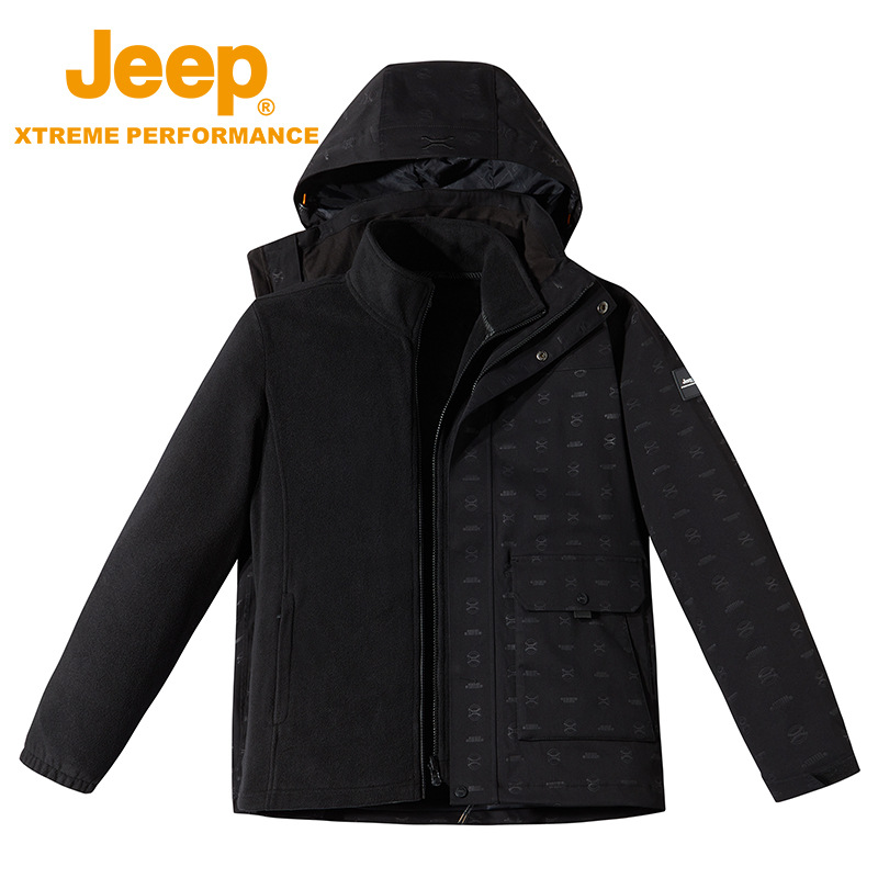 JEEP 秋冬新品冬季冲锋衣男士可拆卸帽子抓绒两件套户外登山服外套J232094089