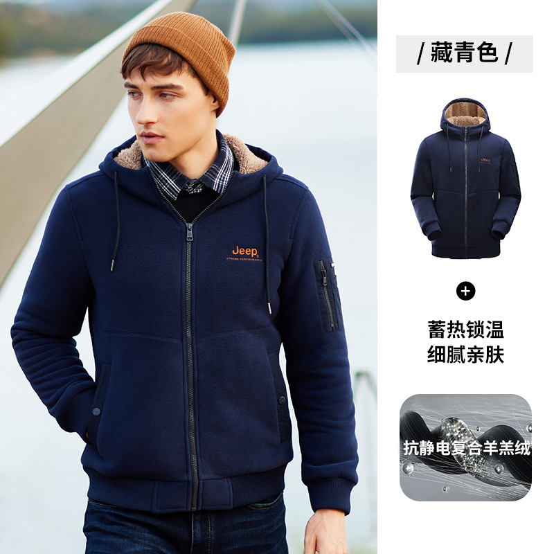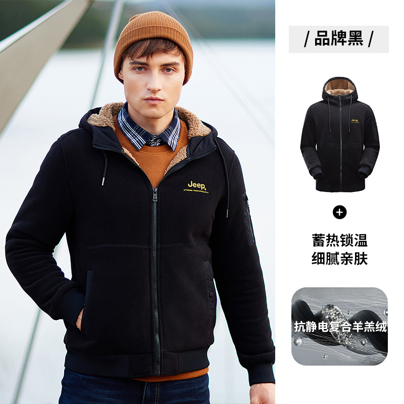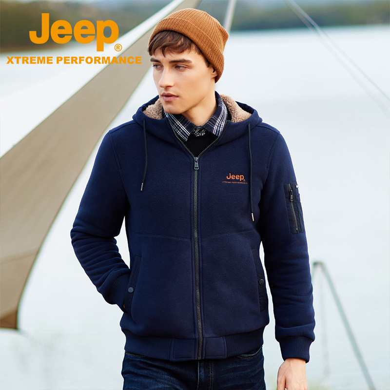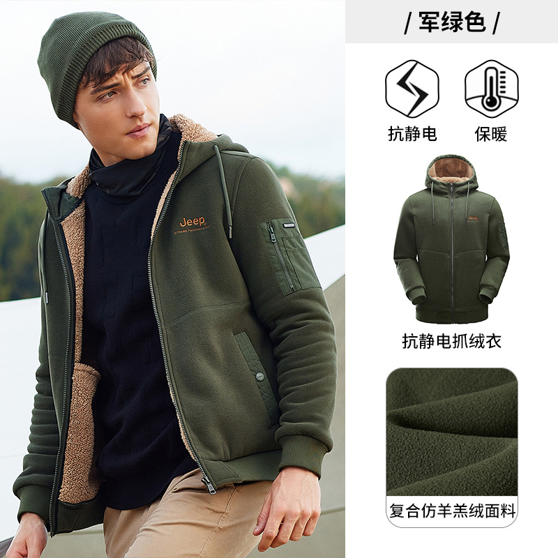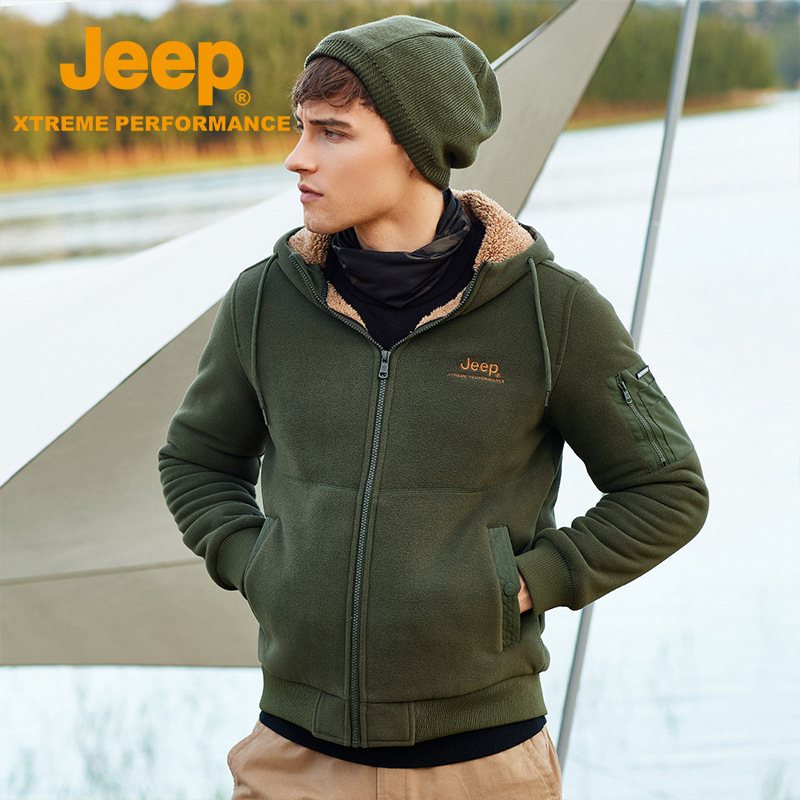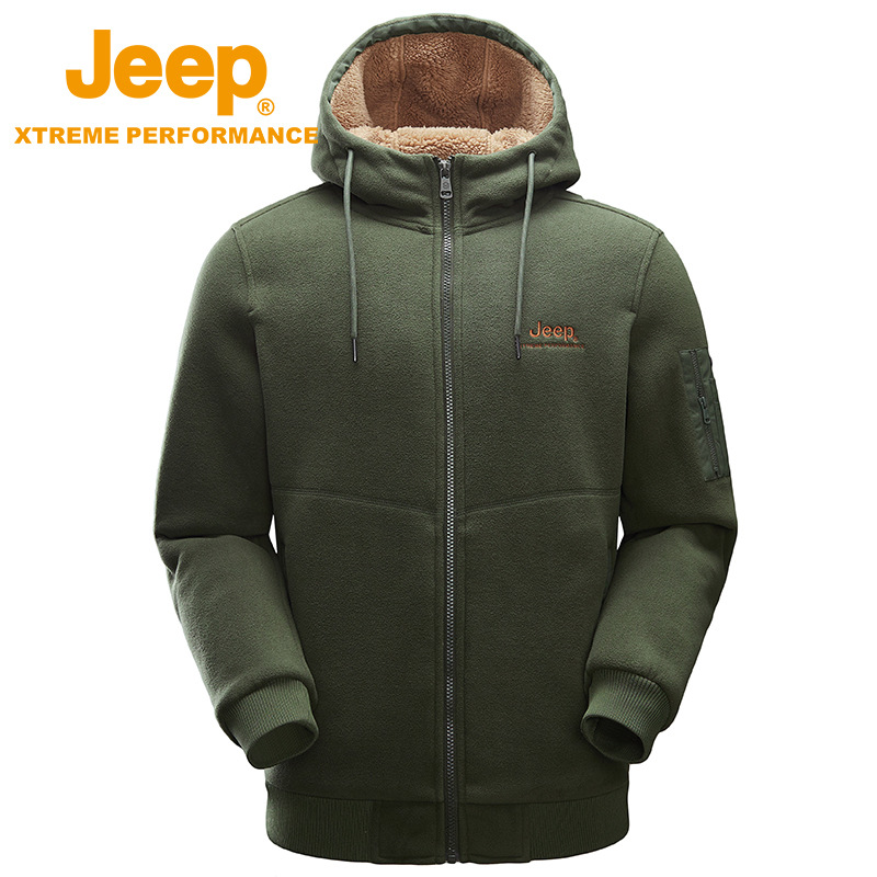 JEEP 秋冬新品加绒连帽抓绒衣外套男户外男士绒衣冲锋衣内胆摇粒绒J232094213