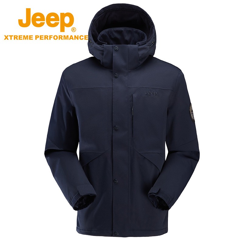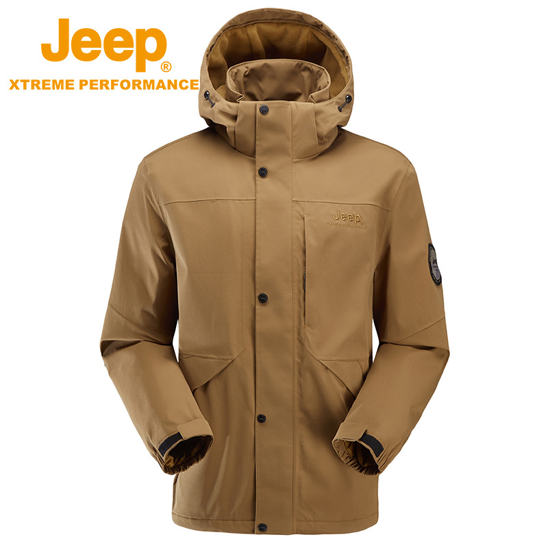 JEEP 秋冬新品冲锋衣男士可拆卸帽冬季户外登山服潮牌防风防水外套J232094085
