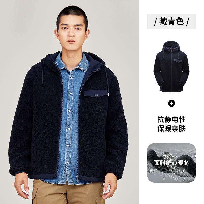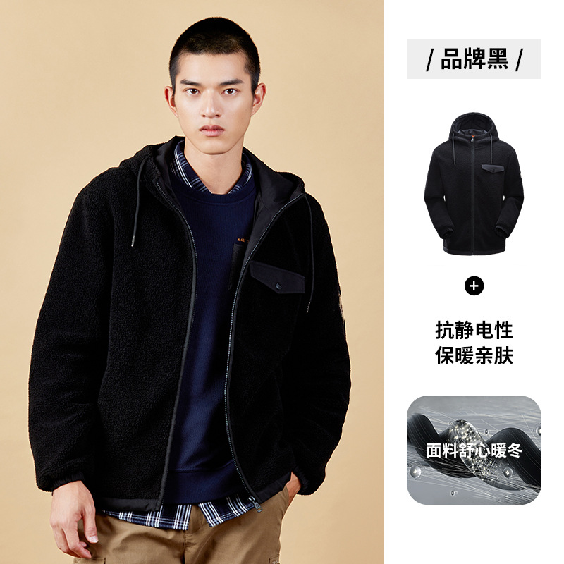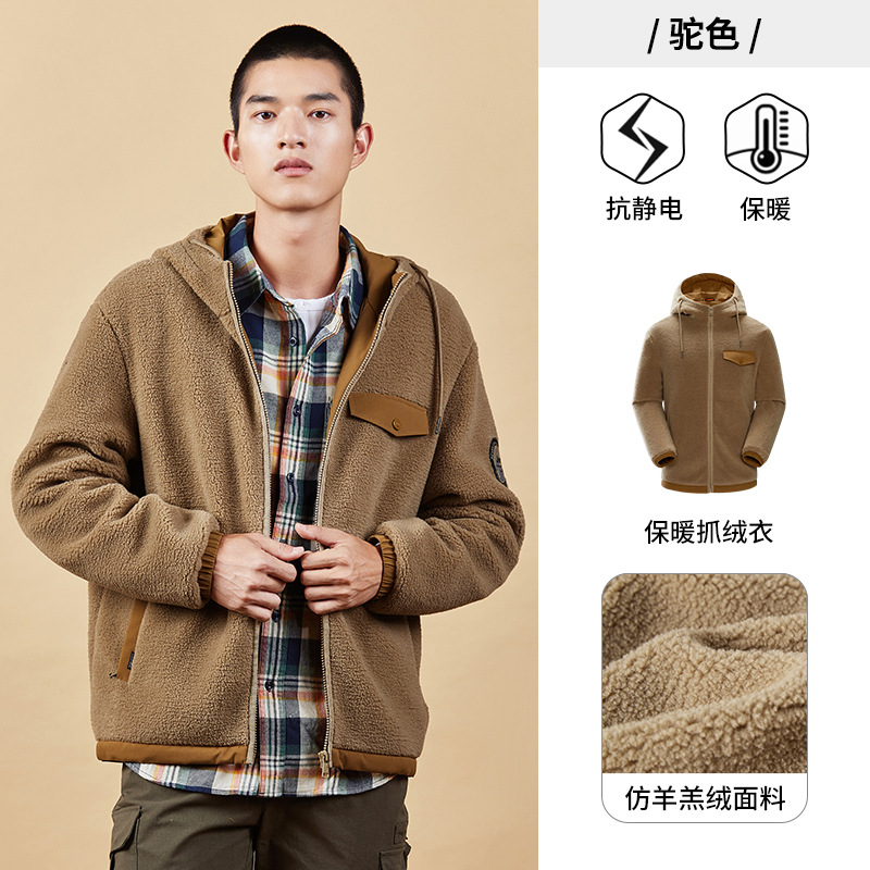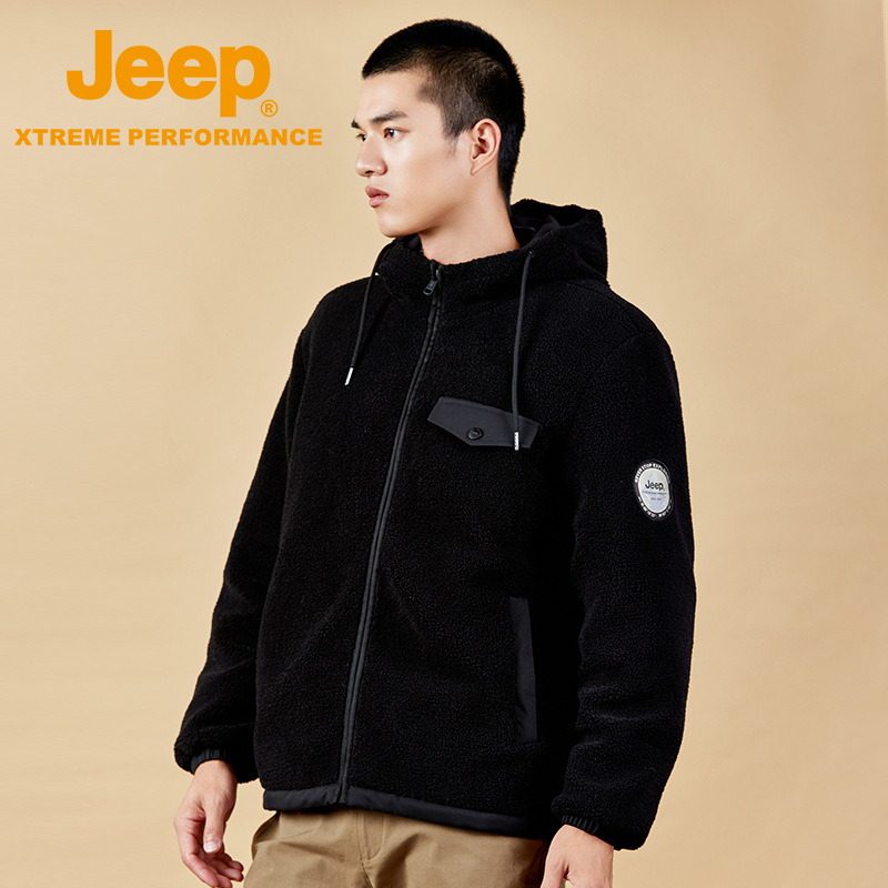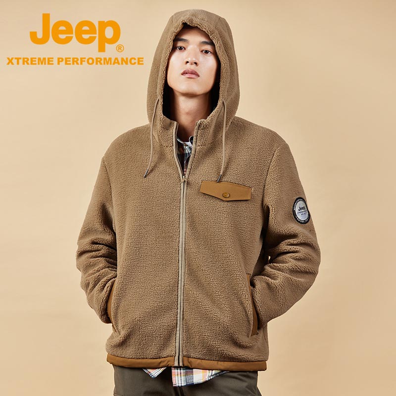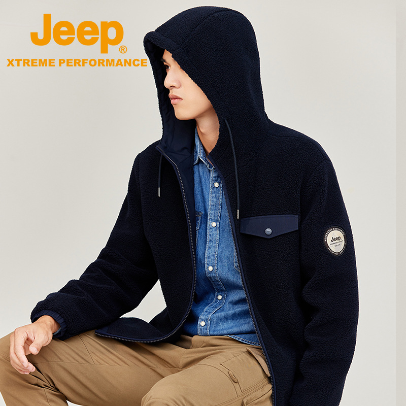 JEEP 户外抓绒衣男士连帽外套冲锋衣内胆双面摇粒绒秋冬保暖衣大码J232094207