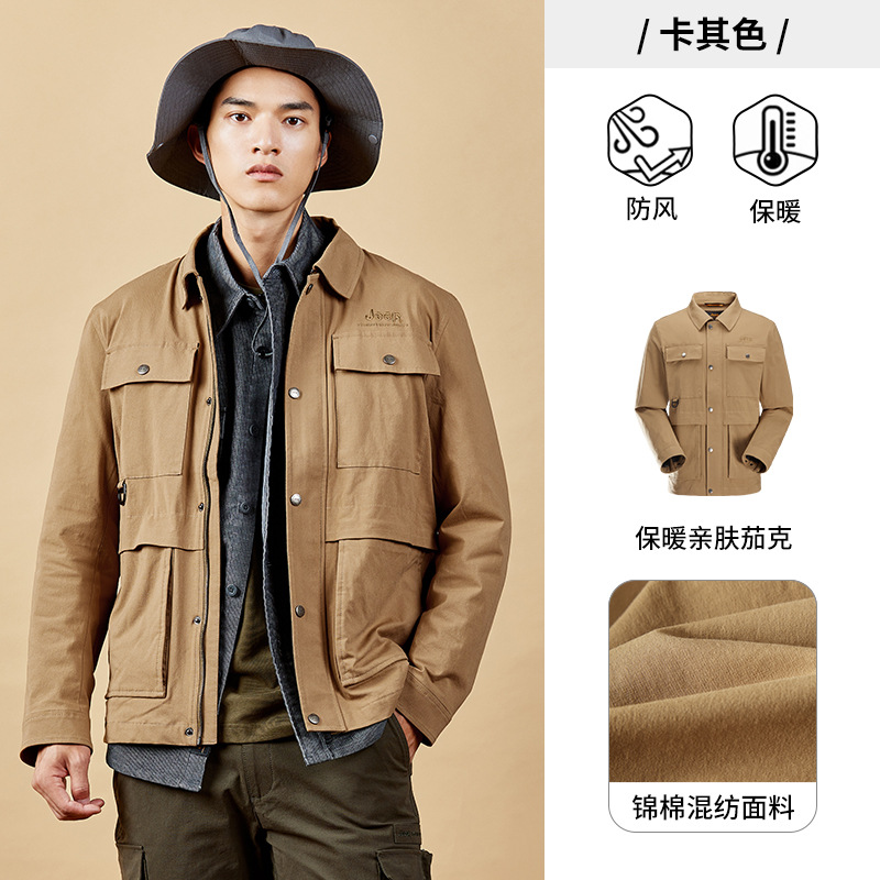 JEEP 秋冬新品新款夹克男士翻领复古时尚休闲帅气宽松工装外套潮流J232095061