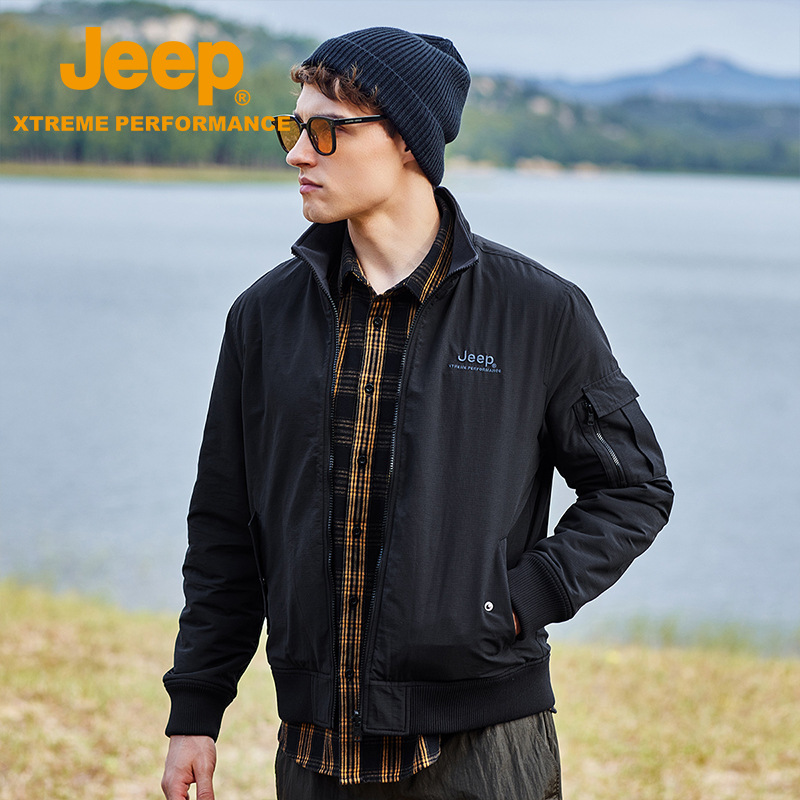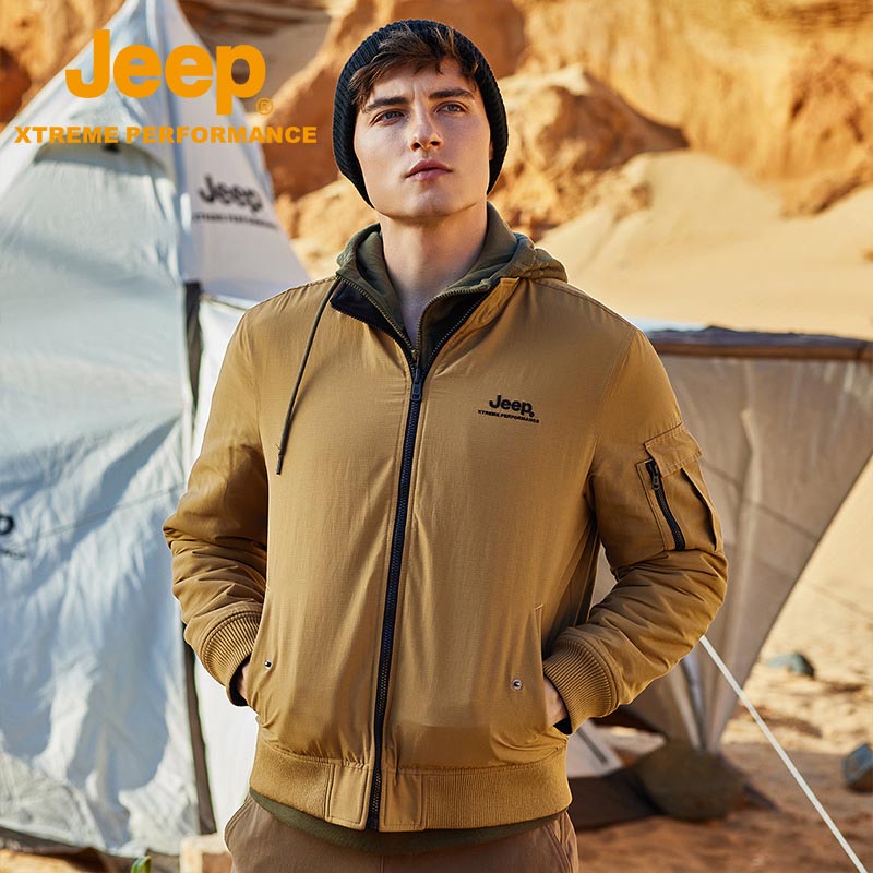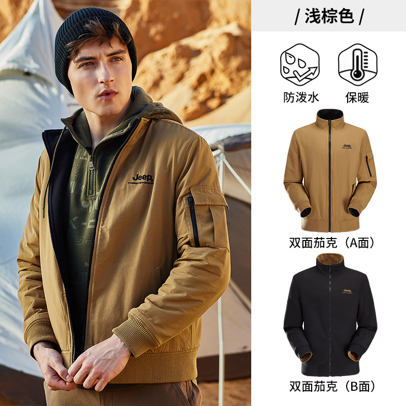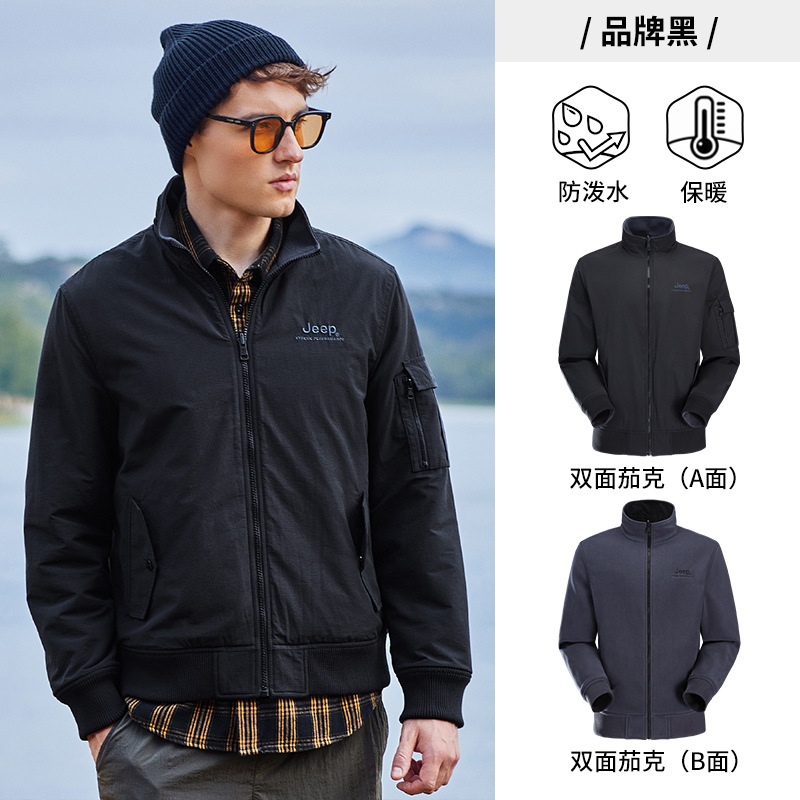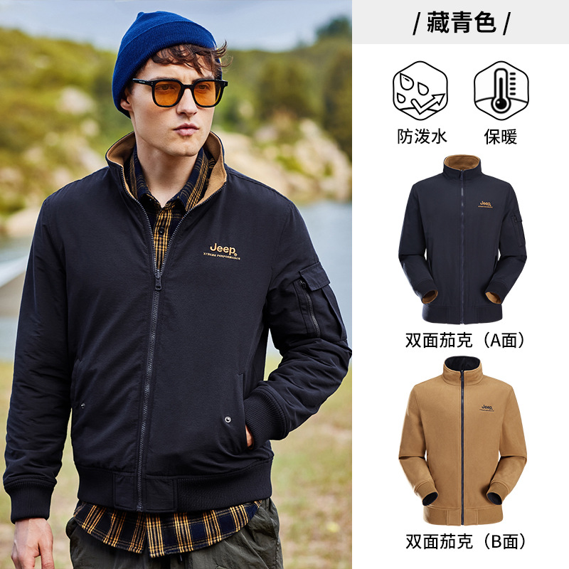 JEEP 秋冬新品双面夹克男户外运动休闲立领中年上衣简约两面外套男J232095071