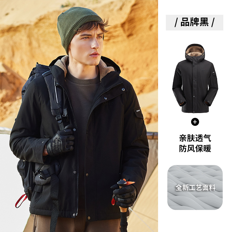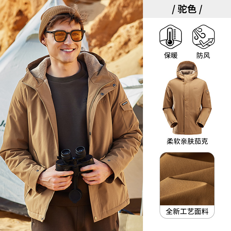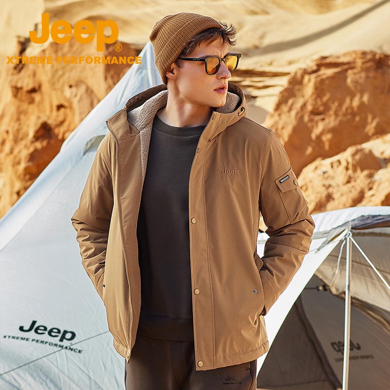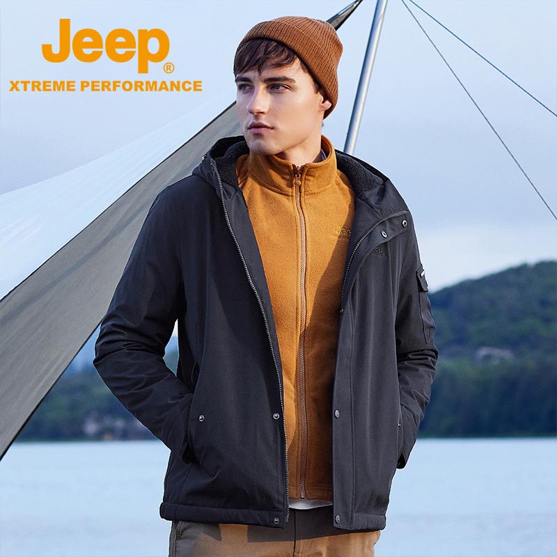 JEEP 新款夹克男士连帽保暖上衣休闲帅气宽松工装外套潮流2002秋冬新款J232095067