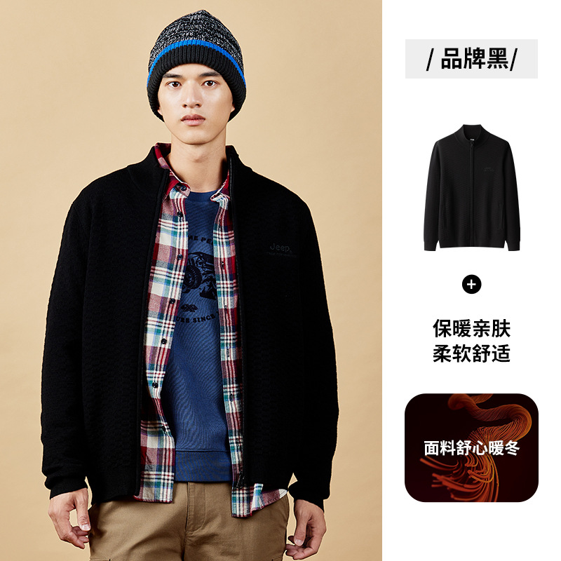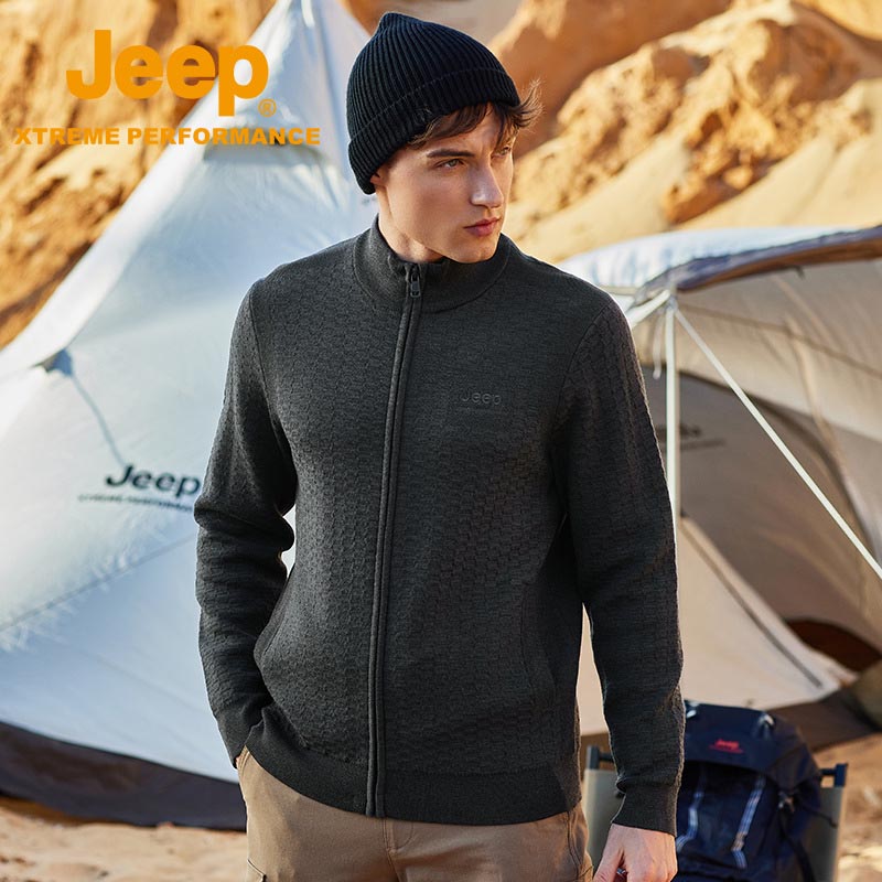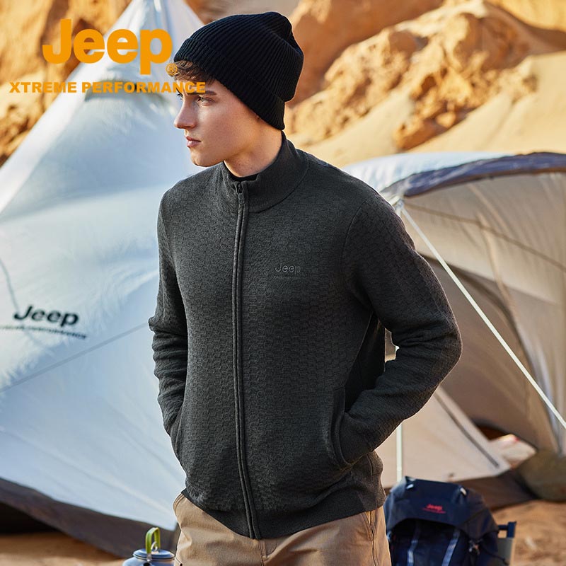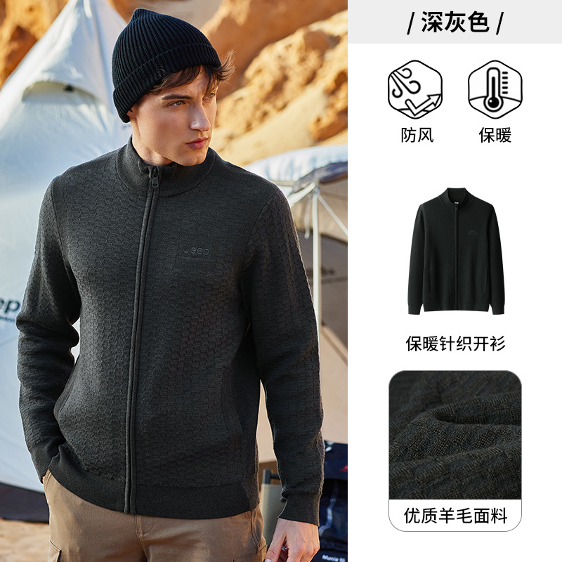 JEEP 针织衫秋季男立领卫衣保暖针织开衫羊毛宽松休闲外套秋冬新品J232095422
