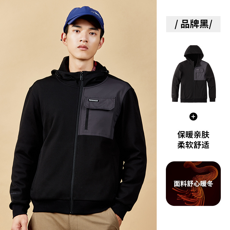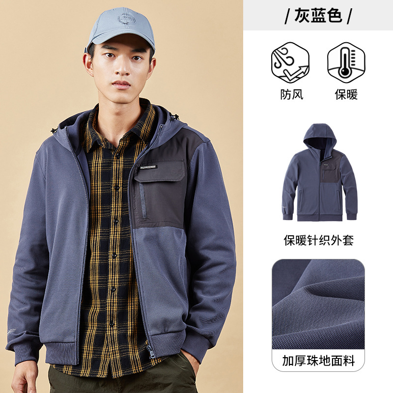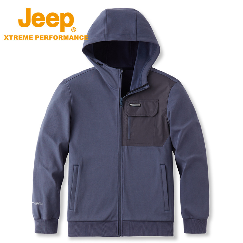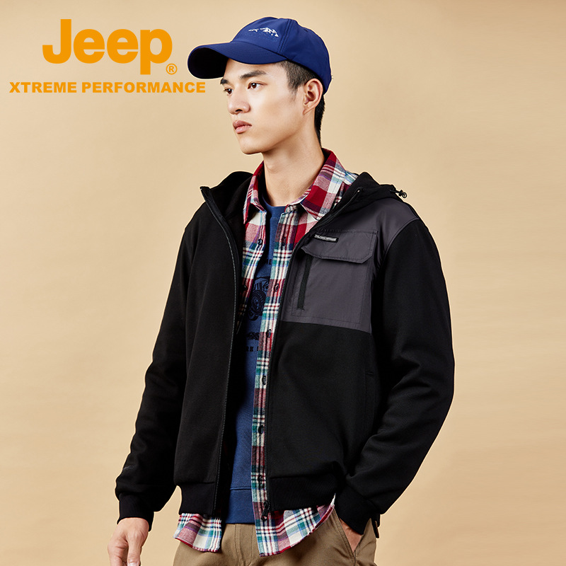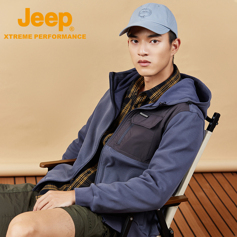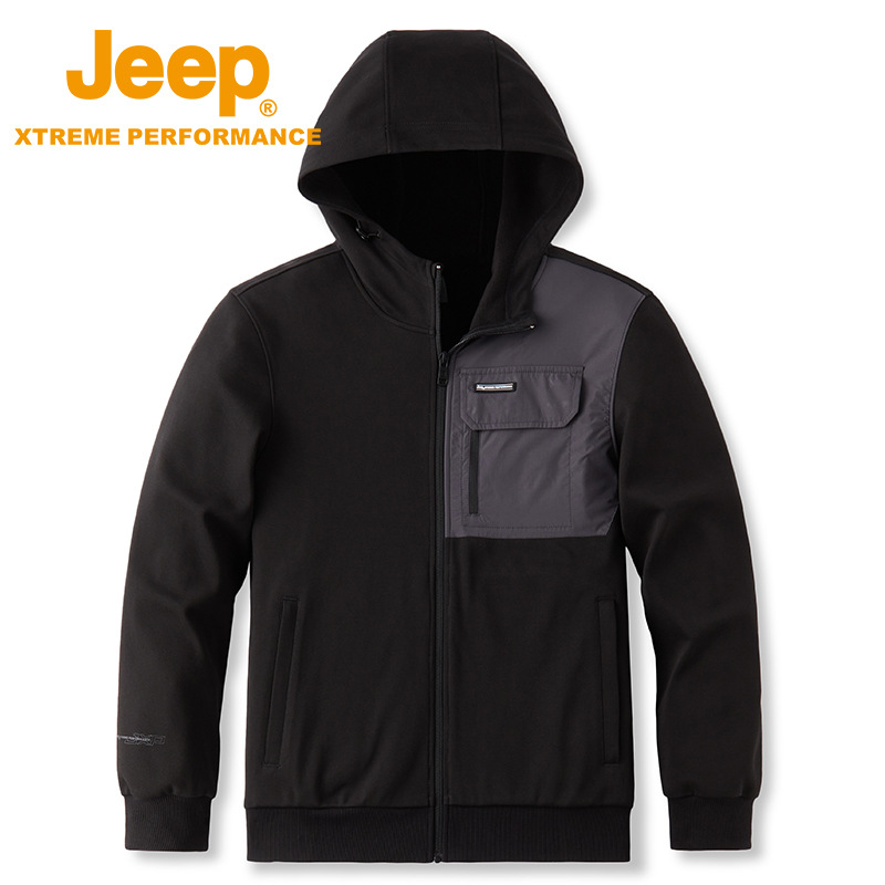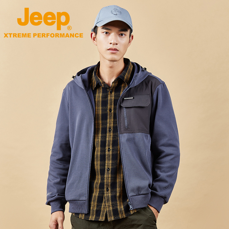 JEEP 连帽针织外套秋季男士卫衣户外休闲开衫拼色时尚上衣秋冬新品J232096126