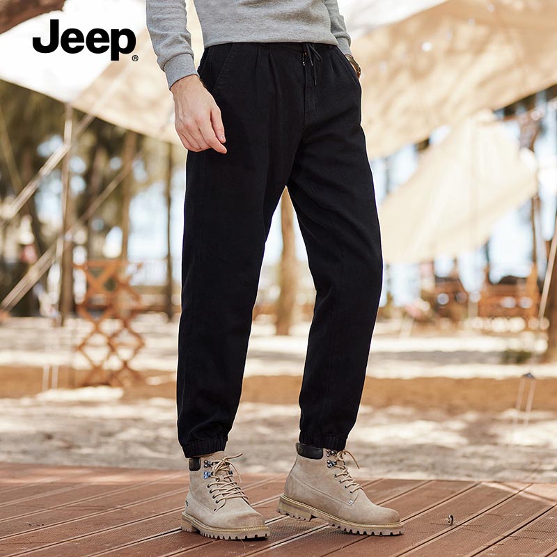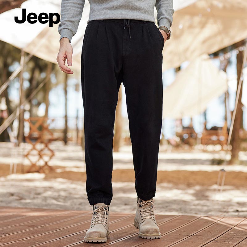 JEEP 束脚运动裤男秋冬新品卫裤中年时尚休闲裤男裤冬季长裤子新款P224MWP707