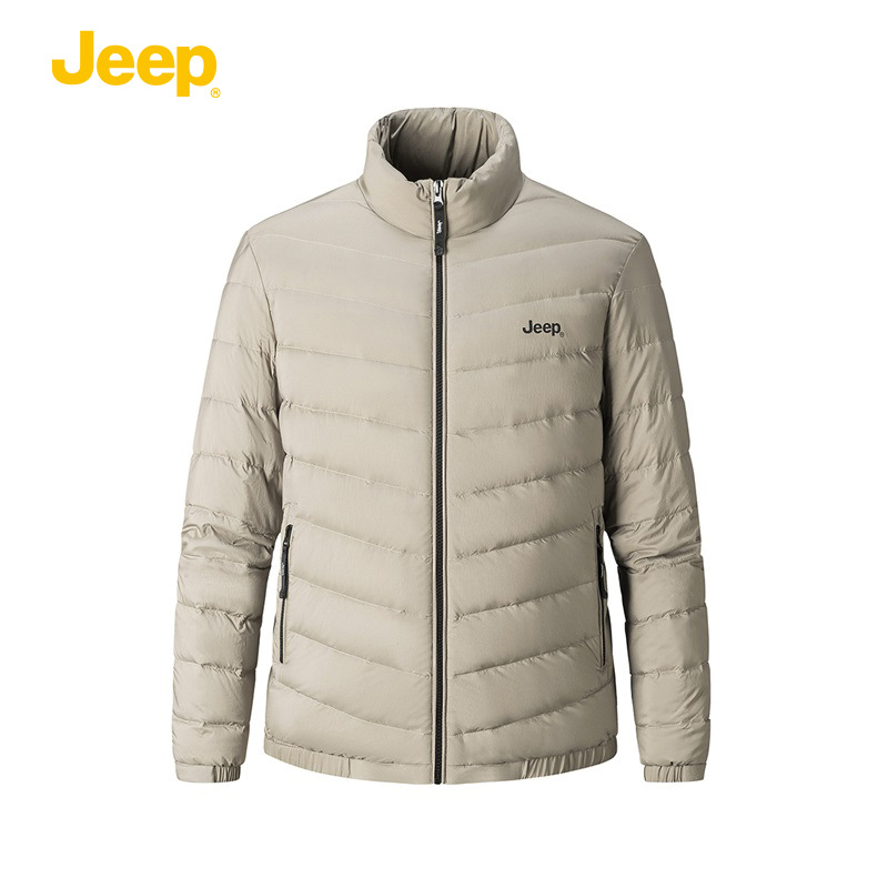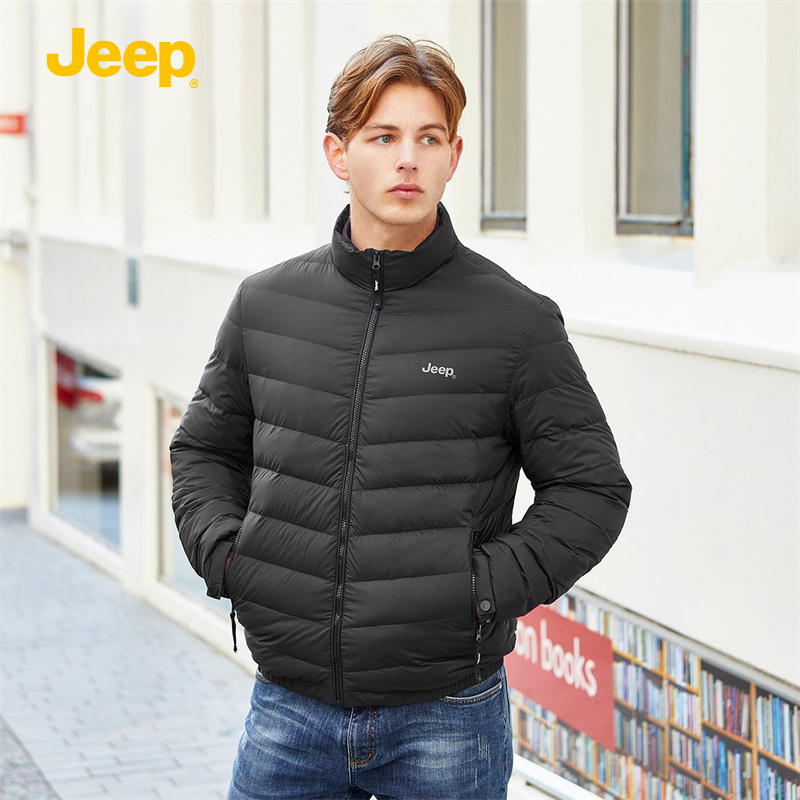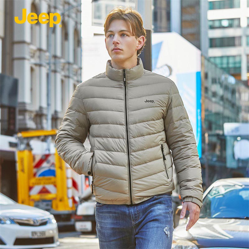 JEEP 羽绒服男士秋冬季轻薄款白鸭绒保暖大码立领短款外套潮男装P224MWD714