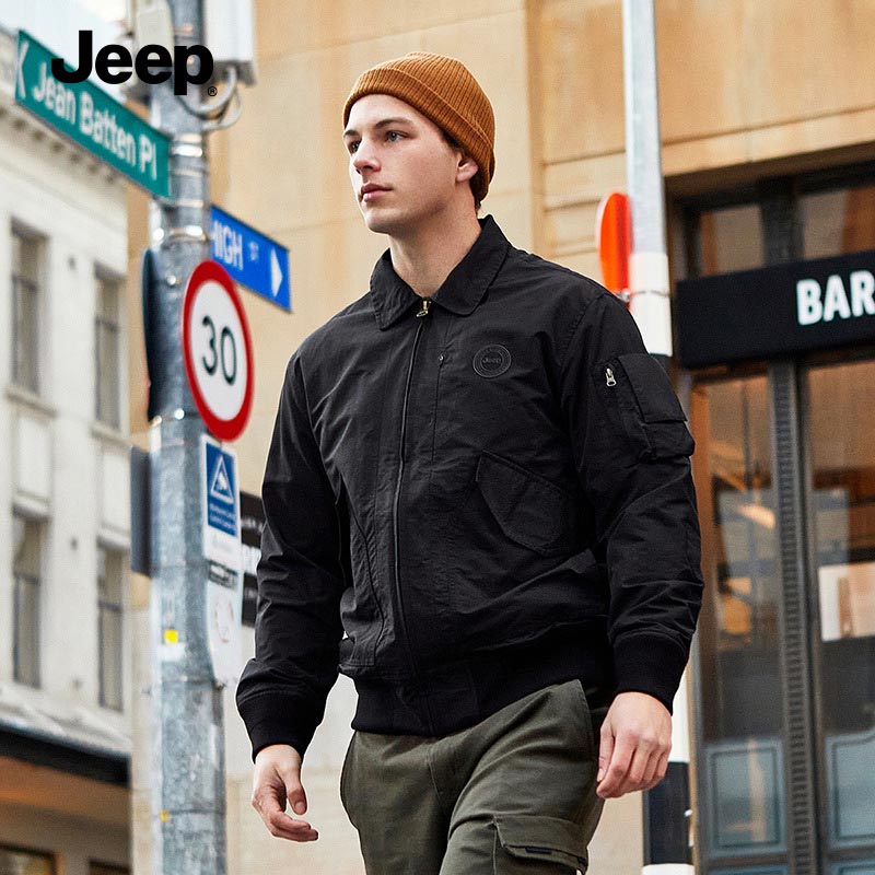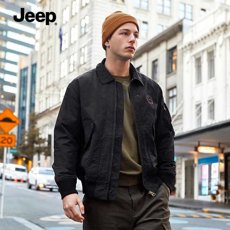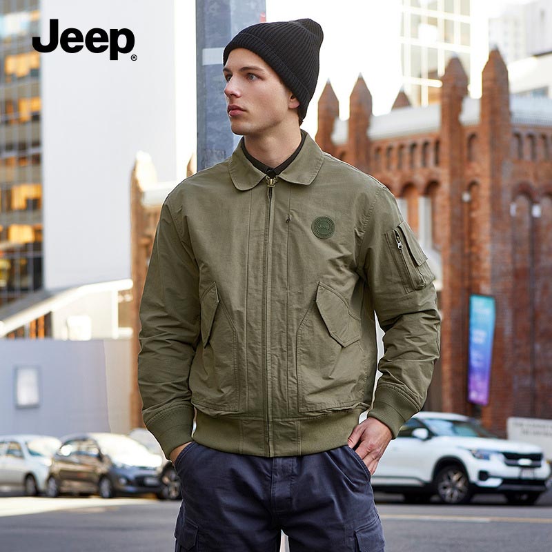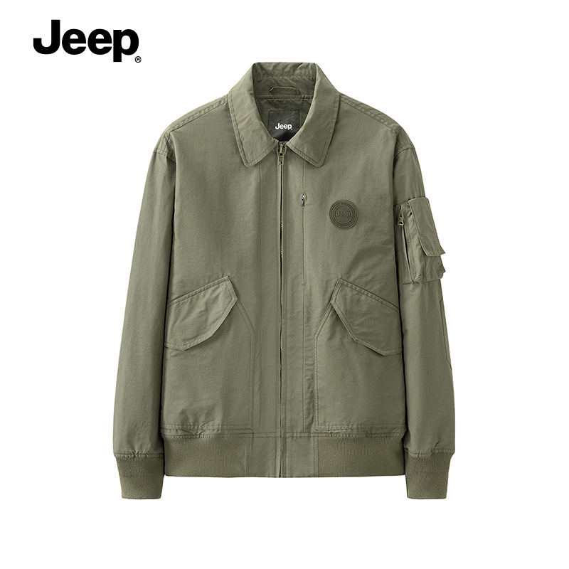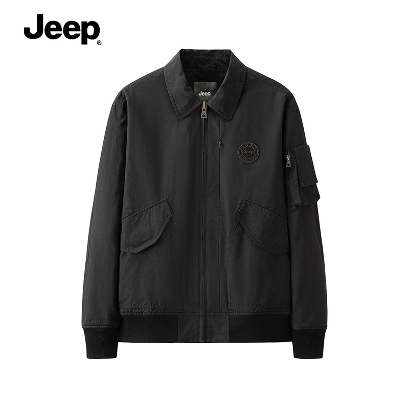 JEEP 复古夹克男秋冬款风衣翻领上衣中年休闲男士大码工装外套男装P223MWJ506