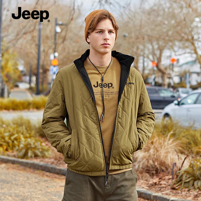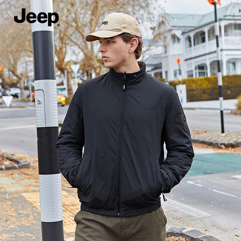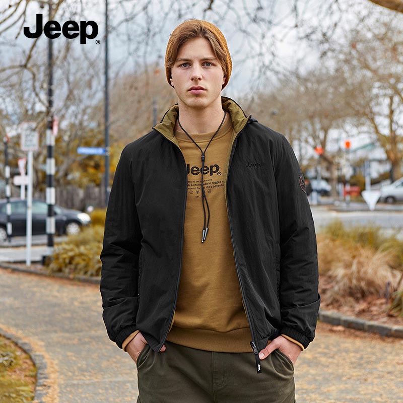 JEEP 外套秋冬新品秋季新款美式休闲立领夹克风衣男可收纳帽双面穿P223MWJ512