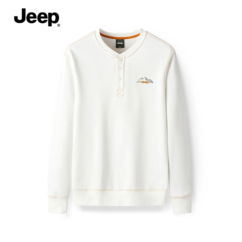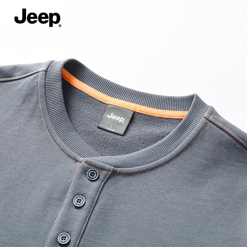 JEEP 秋冬新品长袖圆领气质上衣男士新款百搭休闲宽松收口排扣卫衣P223MKJ531