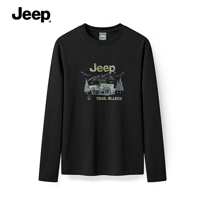 JEEP 秋冬宽松圆领百搭潮流复古情侣卫衣男士秋季新款长袖T恤男P223MKT537