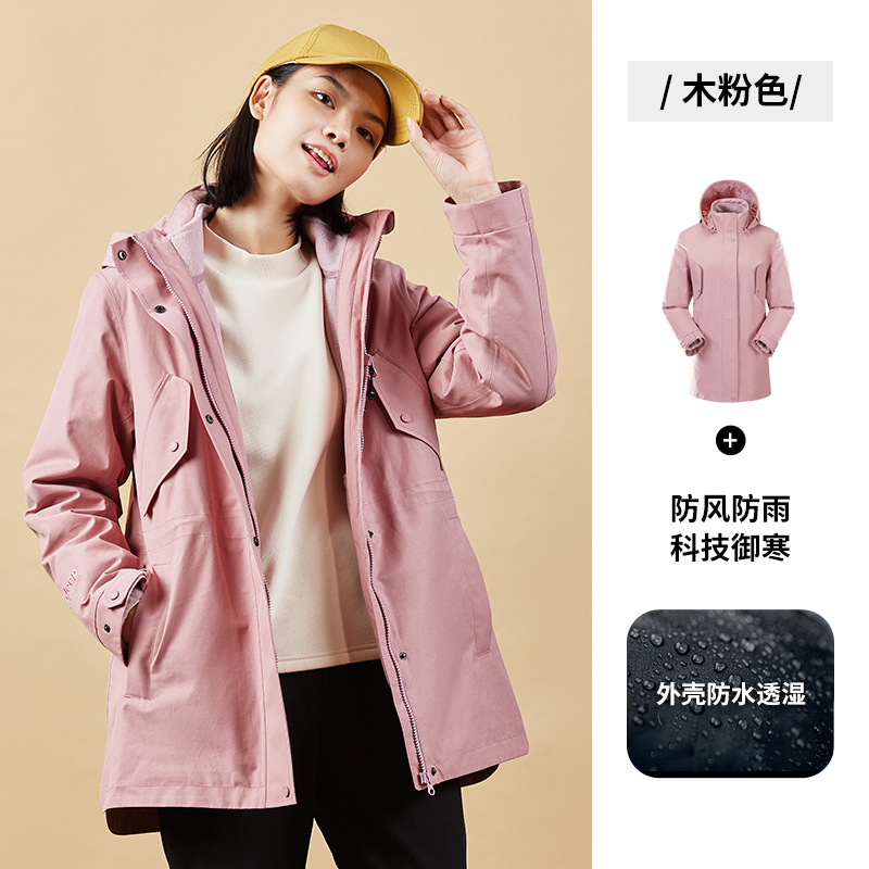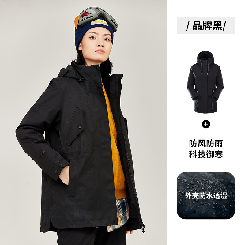 JEEP 户外冲锋衣可拆卸外套冬季防风防水登山服女款秋冬新品两件套J232084004