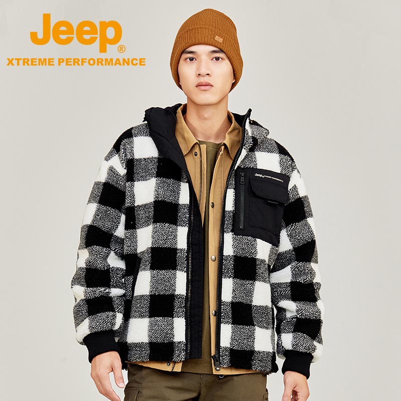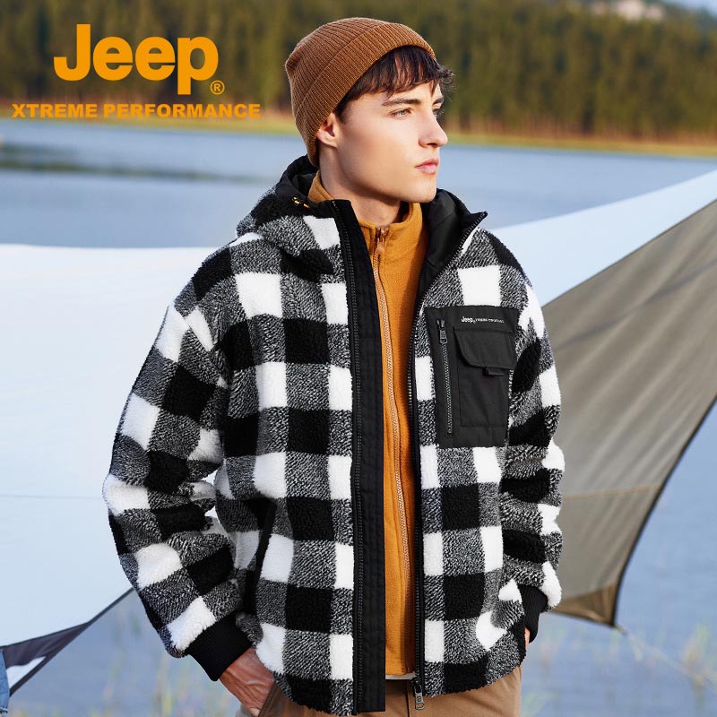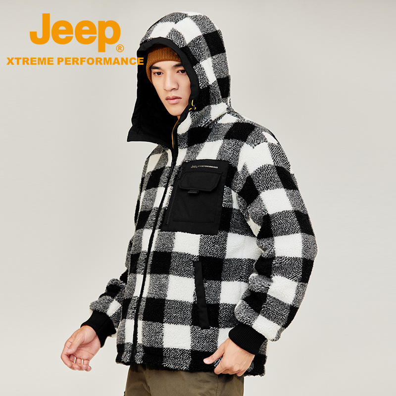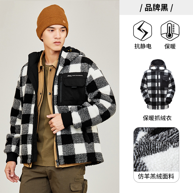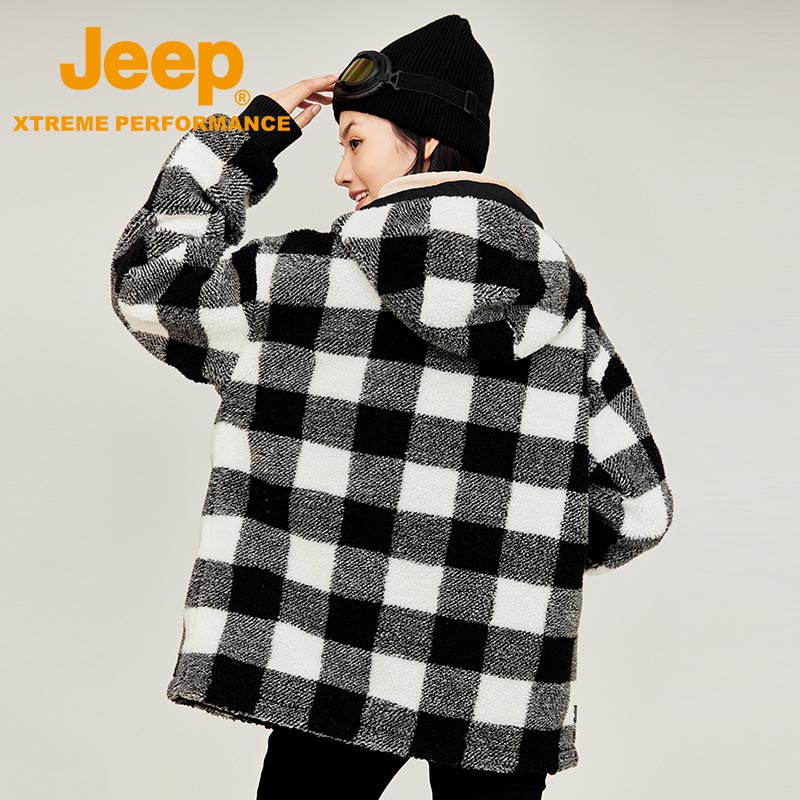 JEEP 秋冬新户外抓绒衣男女双面摇粒绒外套格纹时尚气质加厚保暖衣J232094206