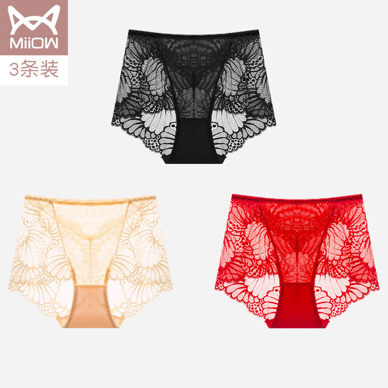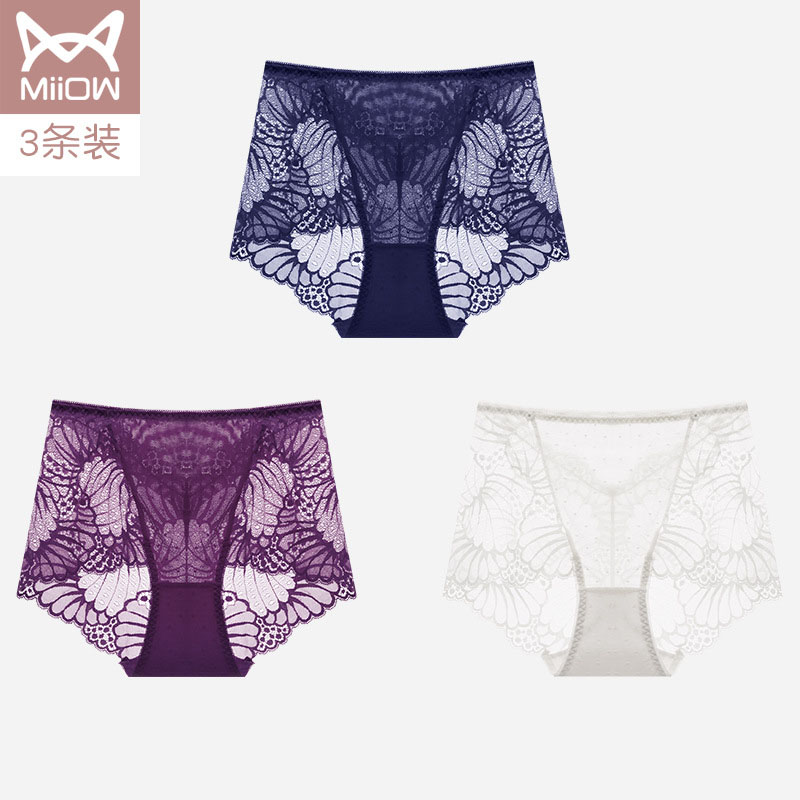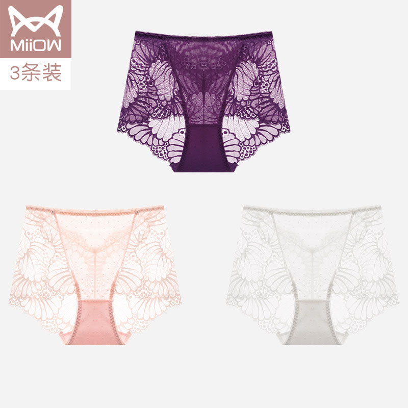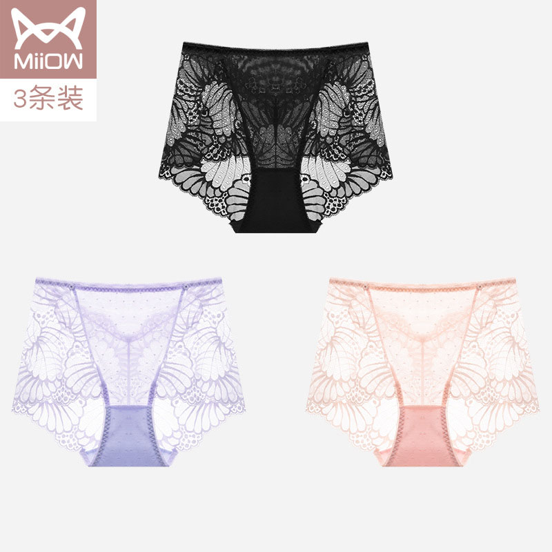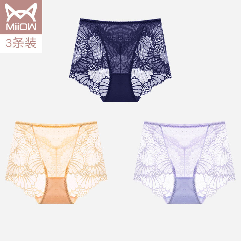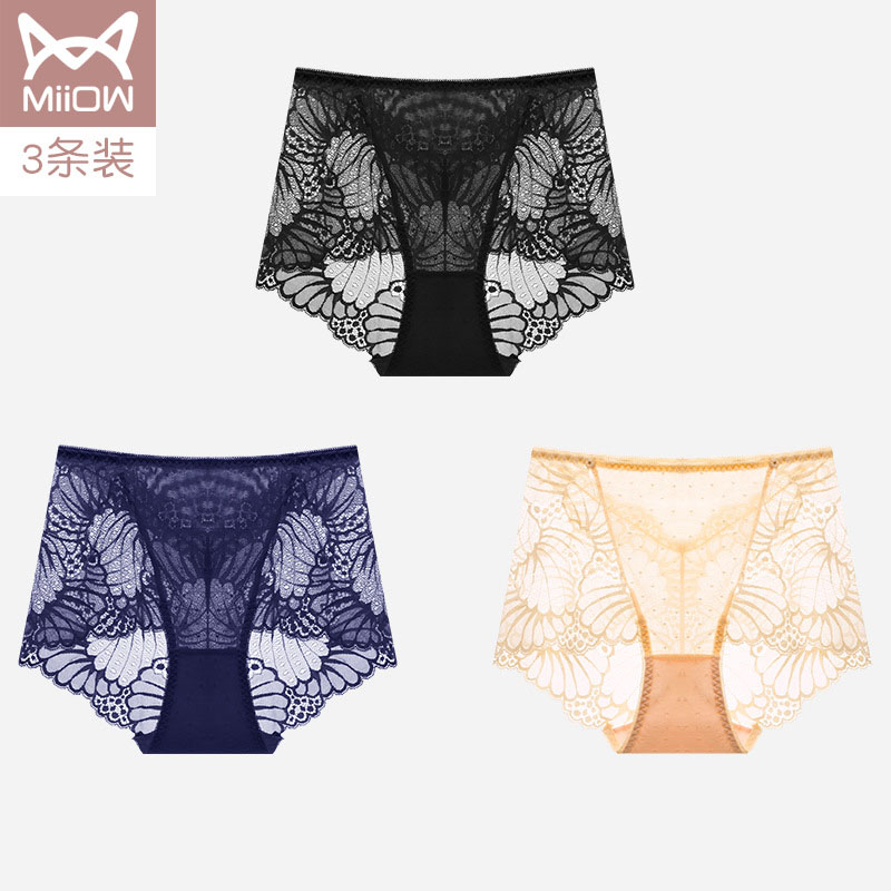 MiiOW/猫人性感内裤女士蕾丝中腰三角高腰裤头抗菌裆JC3994