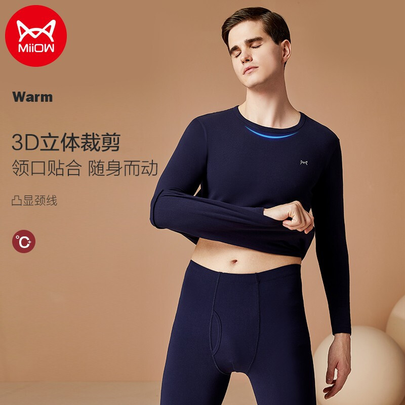 MiiOW/猫人保暖内衣男秋衣秋裤男套装秋冬婴儿棉男士修身透气保暖MR22002