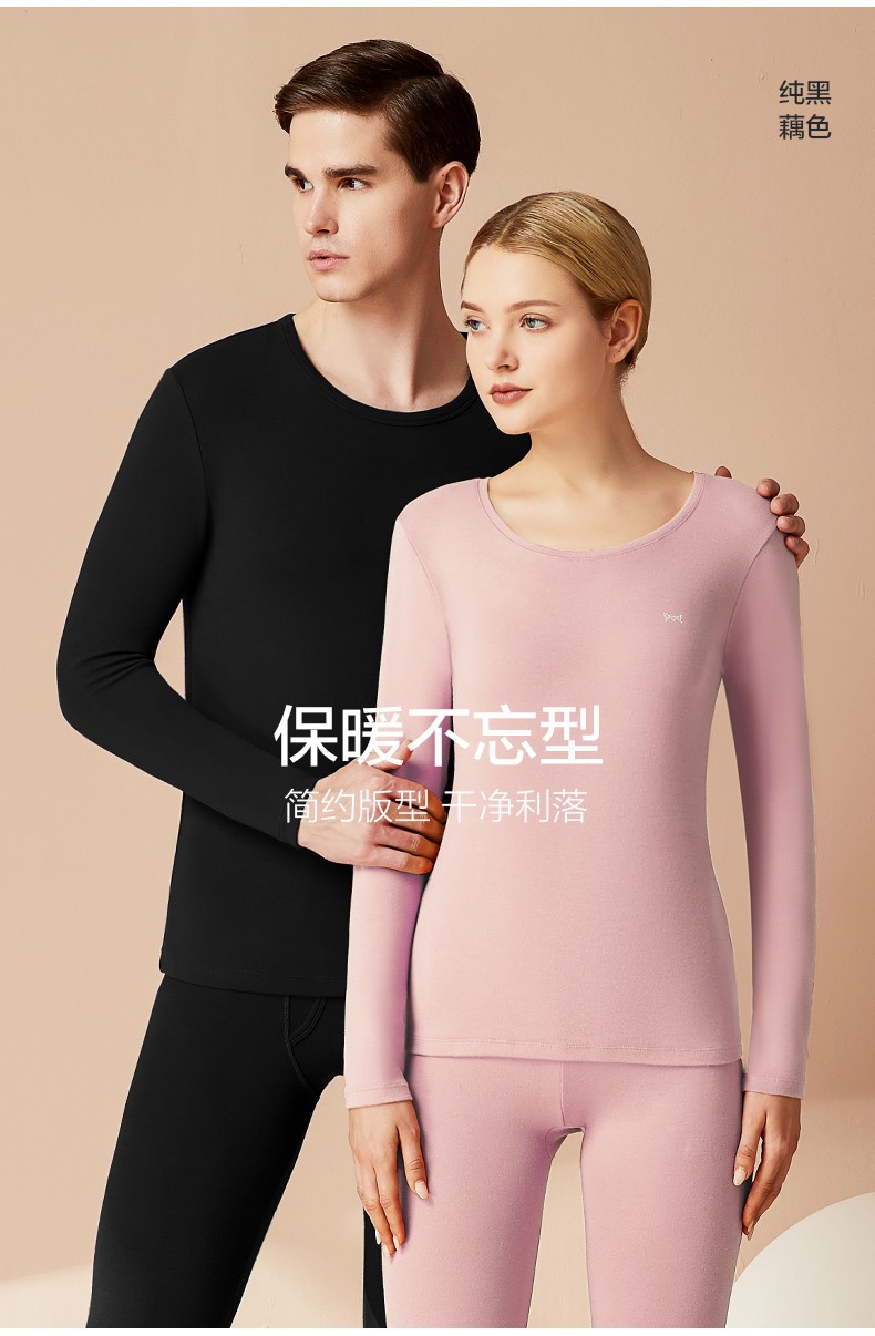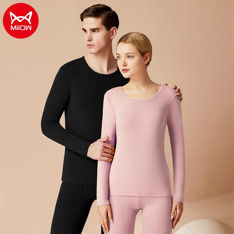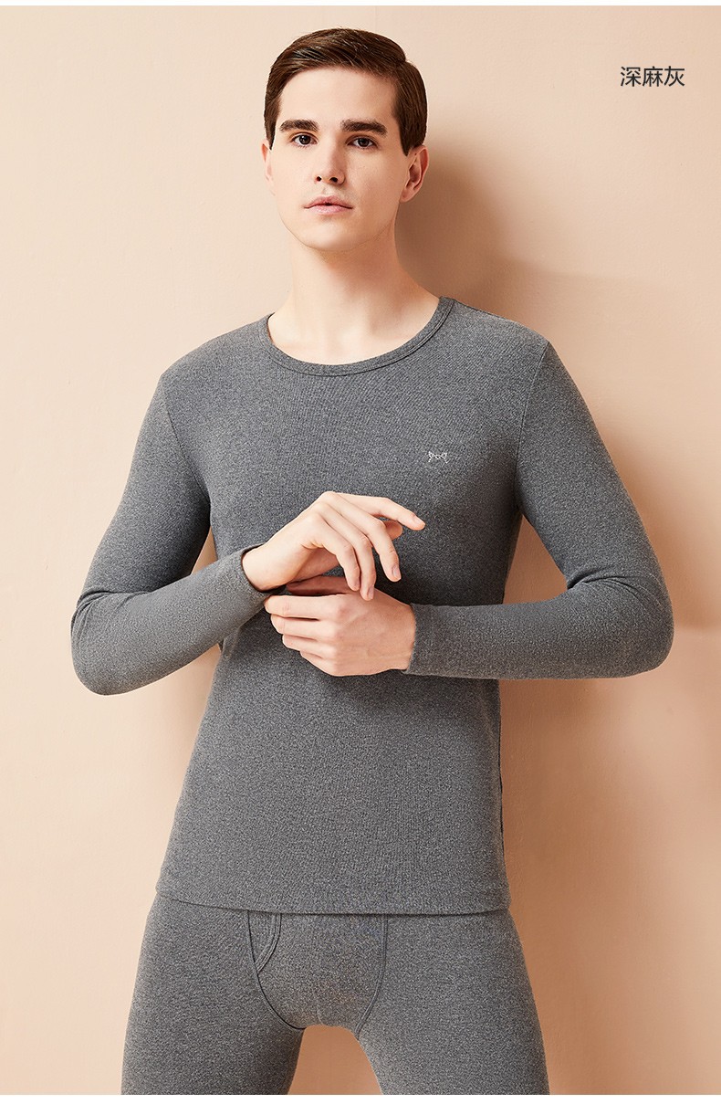 MiiOW/猫人保暖内衣男精梳棉圆领秋冬厚款棉秋衣秋裤男内衣套装MR22001