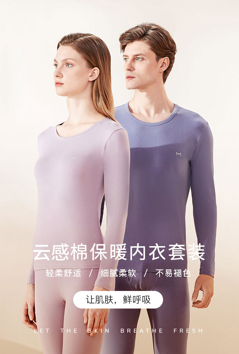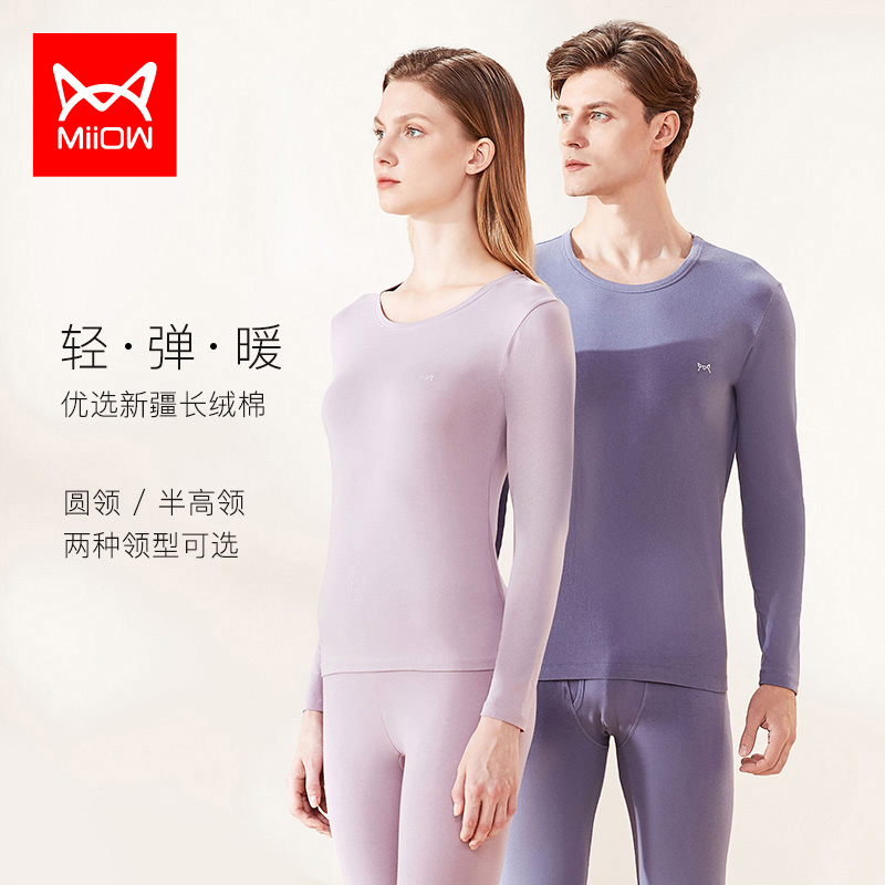 猫人MiiOW秋冬季男士女士舒适保暖内衣情侣款云感棉秋衣秋裤圆领套U21313762