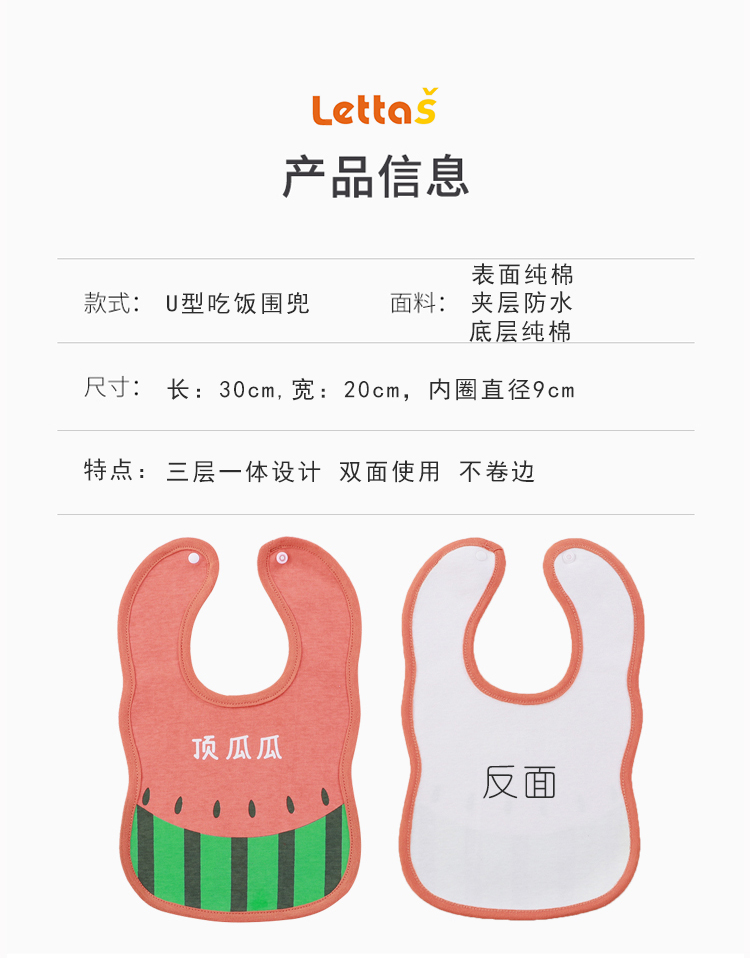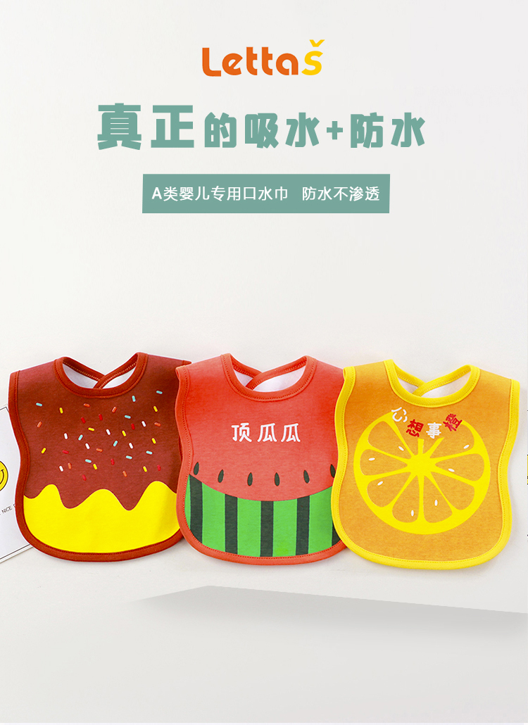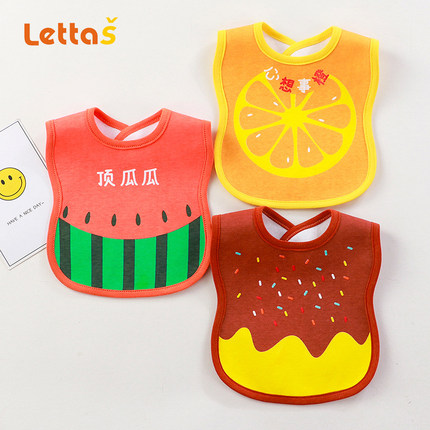 Lettas三片装口水巾新生婴儿纯棉纱布围嘴男宝宝防水吐奶围兜女围脖夏季WDX003