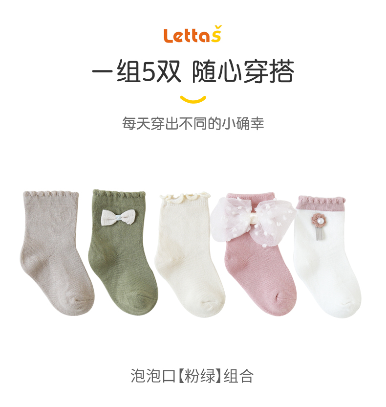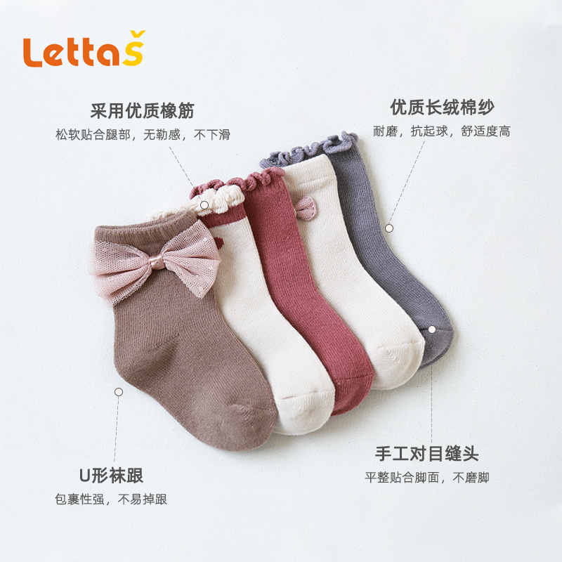 lettas婴儿袜子女童蕾丝花边袜子宝宝袜子纯棉儿童袜子潮ins韩国WAX017