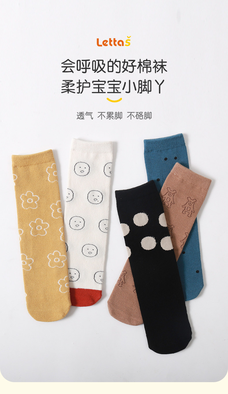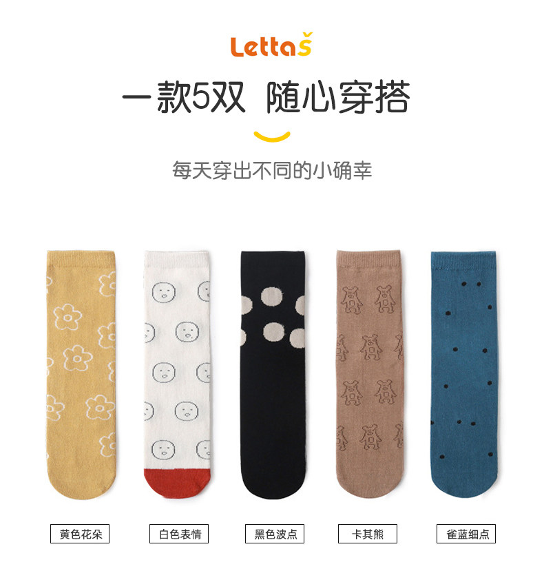 lettas韩版儿童袜子女冬中筒新款纯棉儿童袜子潮ins韩国长袜WAX013