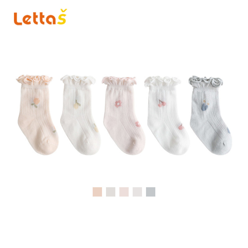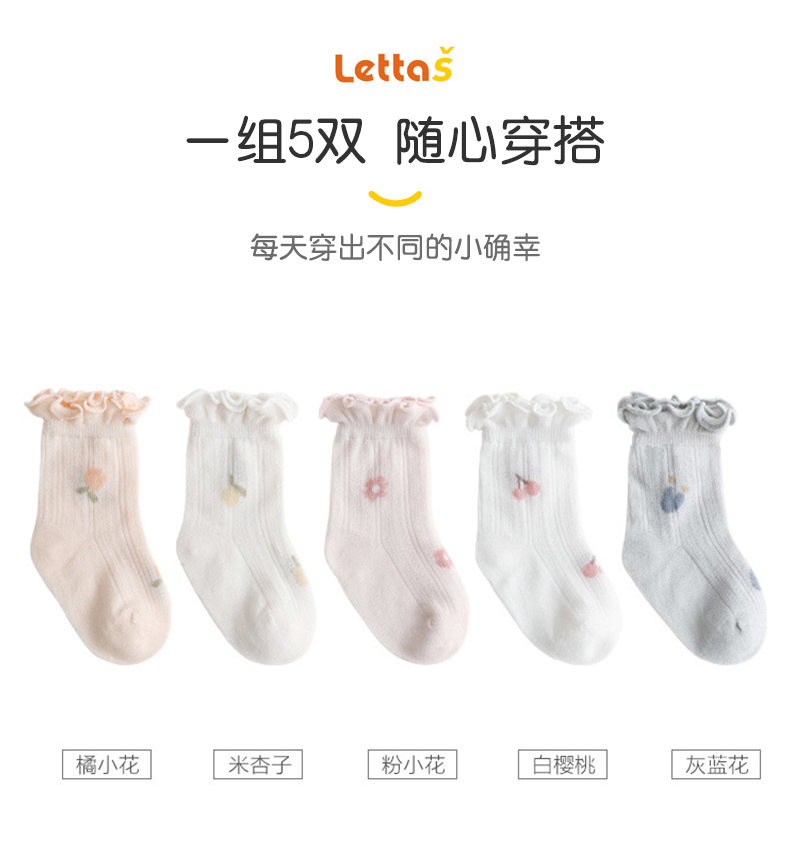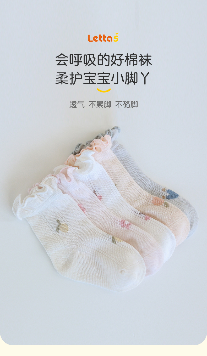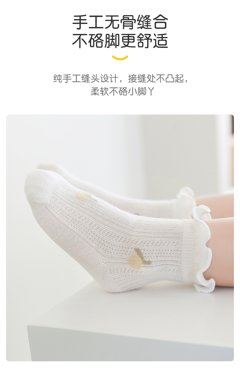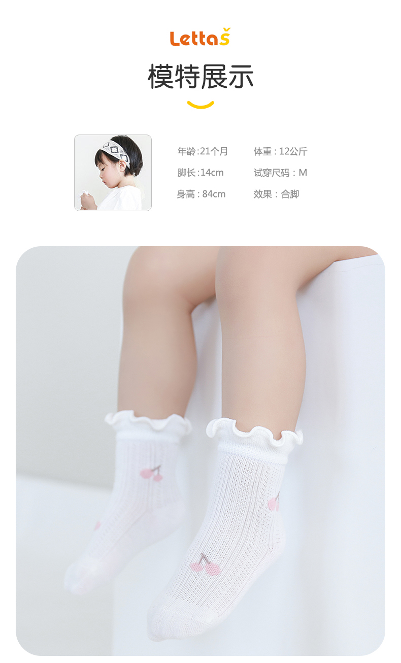 lettas婴儿袜子夏季薄款新生儿宝宝袜子松口无骨儿童纯棉网眼WAX010