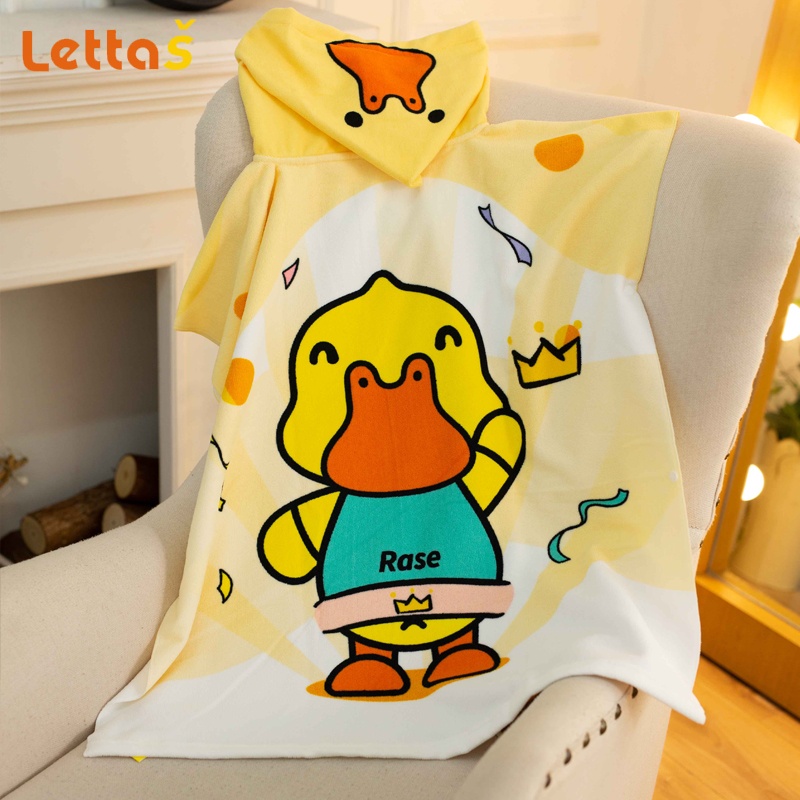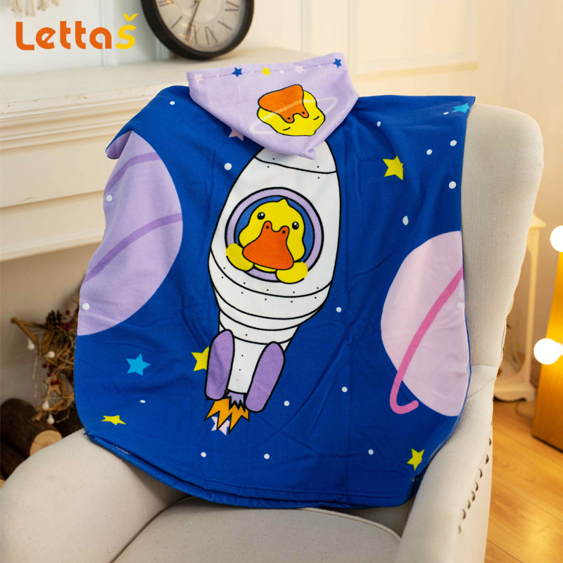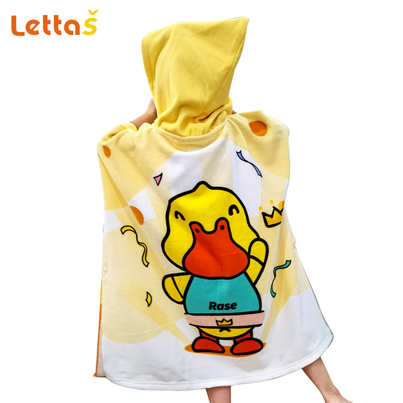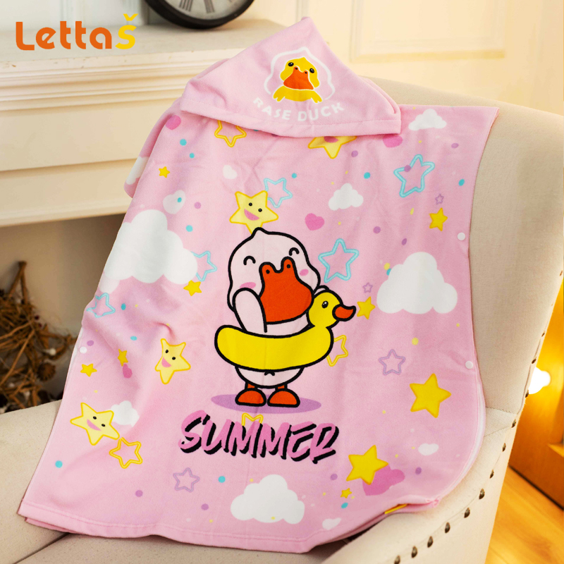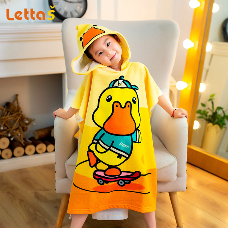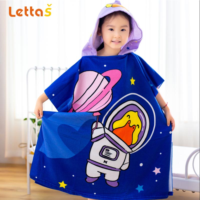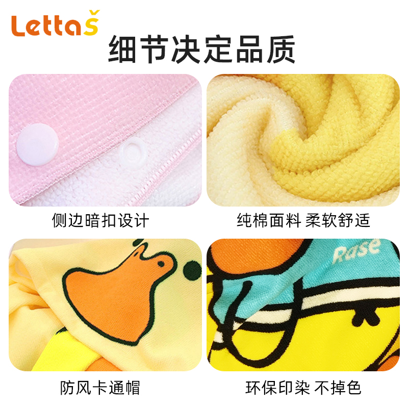 Lettas浴巾儿童专用大童婴儿可穿式斗篷带帽浴袍大号家用珊瑚绒吸水速干YJ001