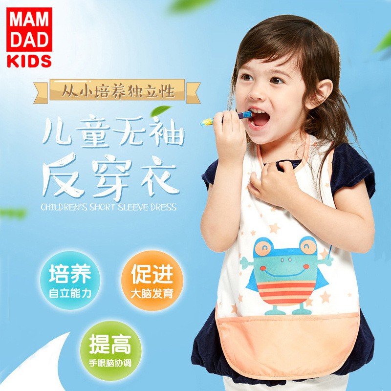 KIDS MAM&DAD爸妈亲春夏儿童防水饭兜 宝宝吃饭罩衣男童女童口水巾两件装86602