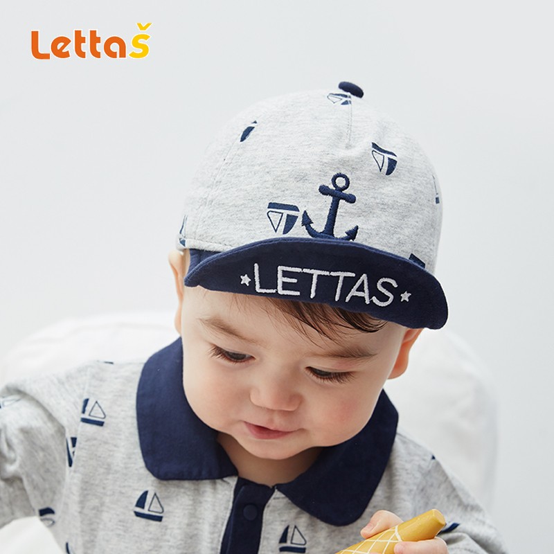 Lettas纯棉婴儿遮阳帽鸭舌帽棒球帽儿童夏季防晒宝宝帽子薄款可爱超萌男LB014