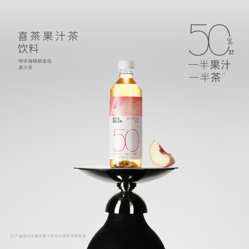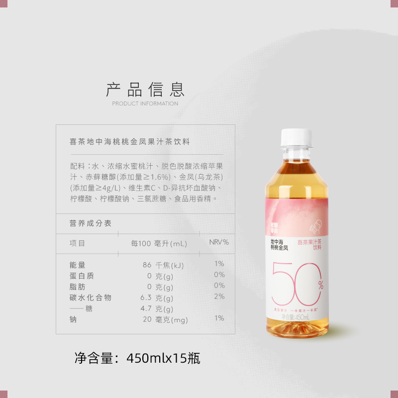 食品饮品>饮料>茶饮料> 喜茶 地中海桃桃金凤低糖果汁茶饮料果茶450ml*15瓶整箱装