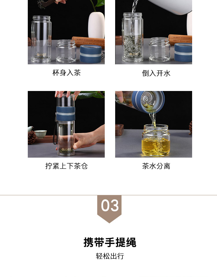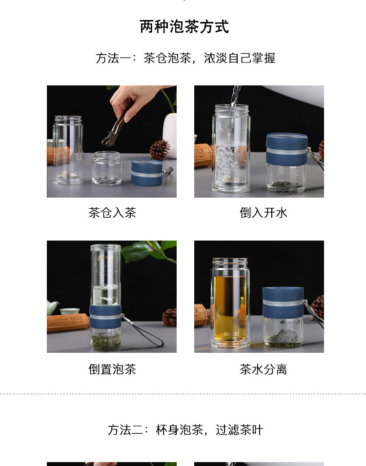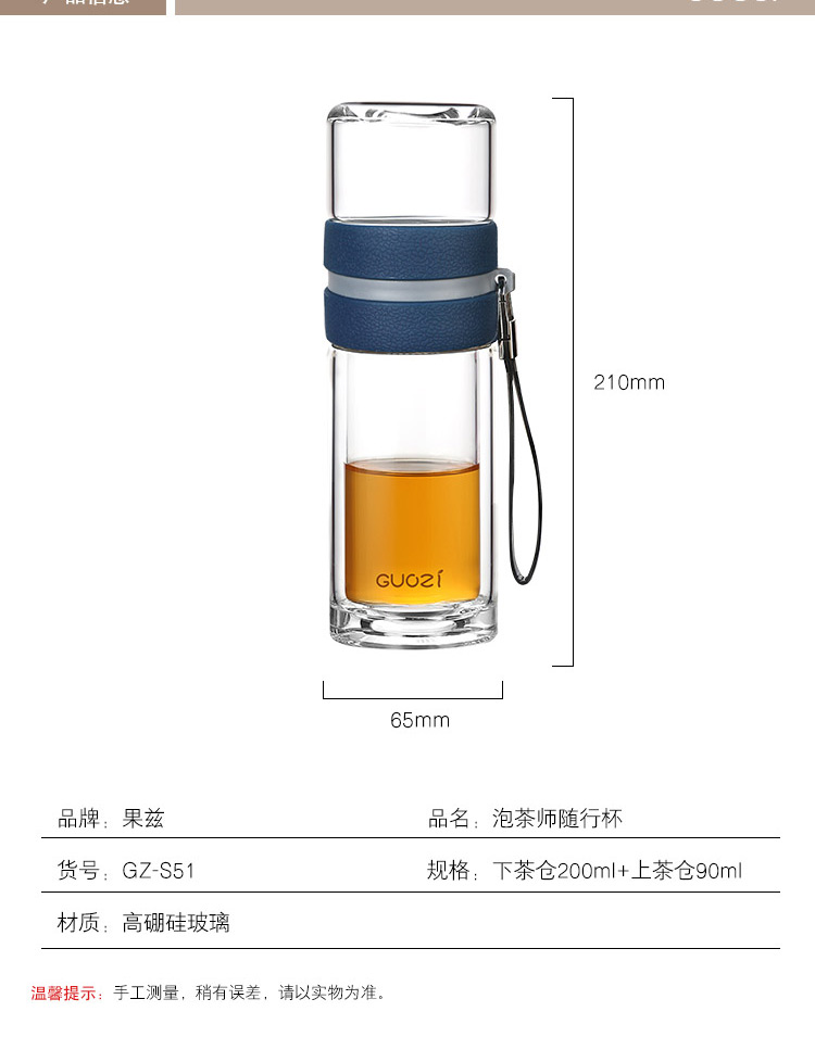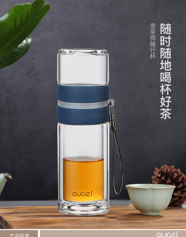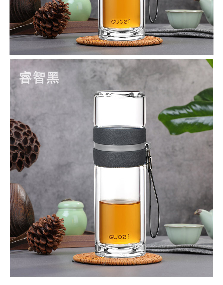 GUOZI果兹 泡茶师随行杯GZ-S51茶水分离杯GZ-S51下茶仓200ml+上茶仓90ml时尚简约商务风