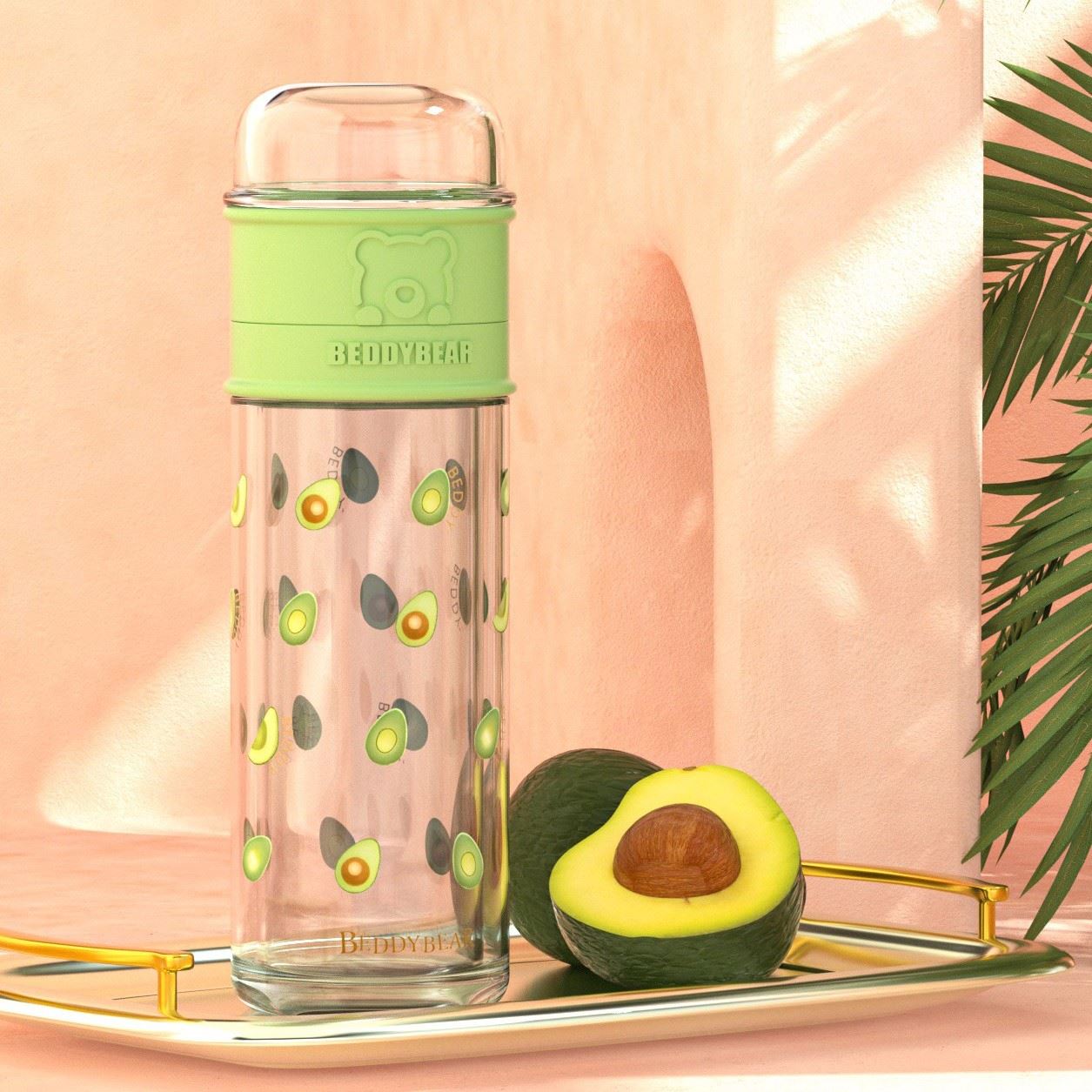 杯具熊茶水分离双层玻璃杯男女杯过滤办公便携创意可爱牛油果水杯