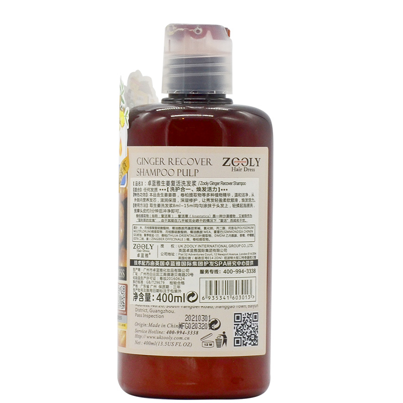卓蓝雅(ZOOLY)生姜复活草修护洗发水洗发护发二合一温和洁净姜汁洗发露 洗护二合一(6号)400ml