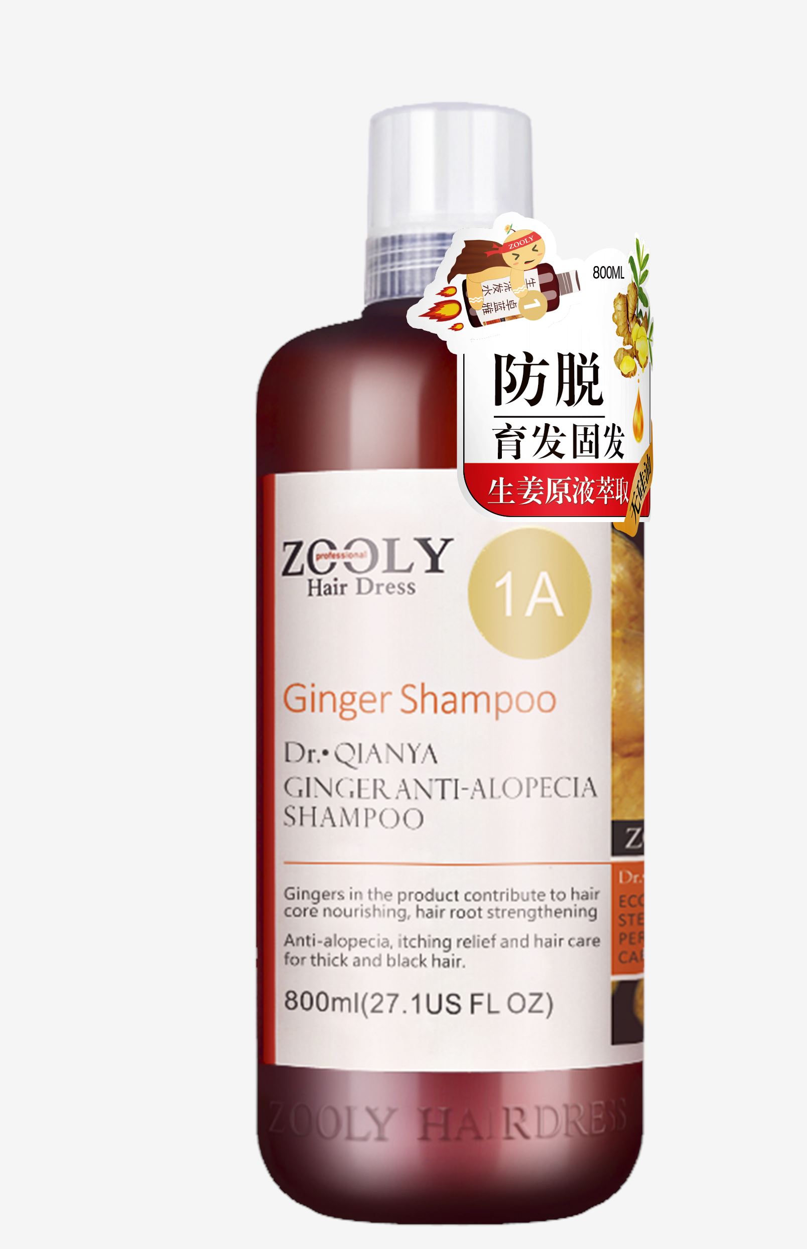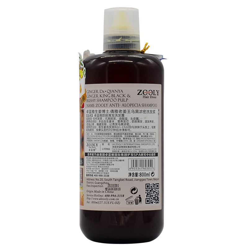 卓蓝雅 洗发水无硅油强根健发洗头膏减少掉发男女通用 生姜防脱育发洗发露1A 800ml