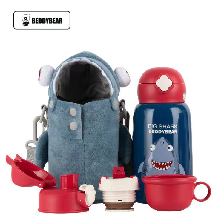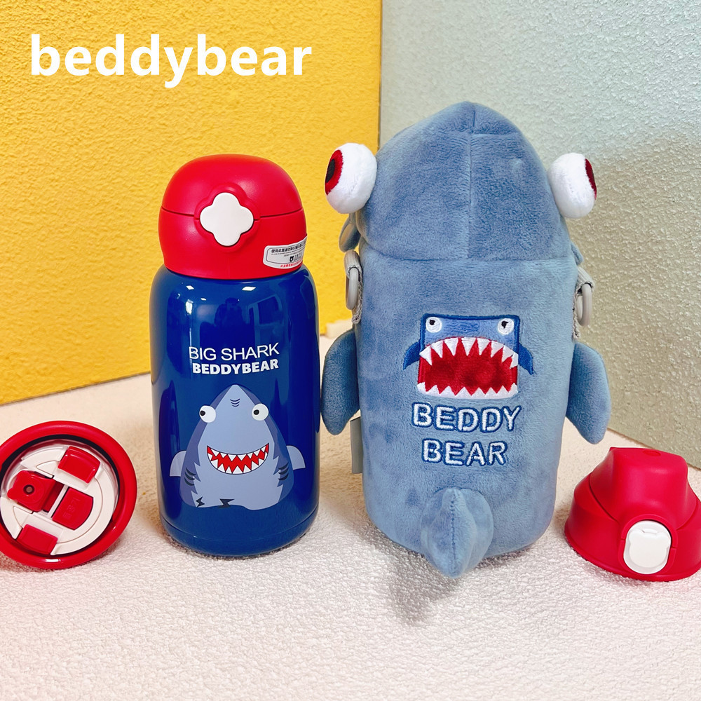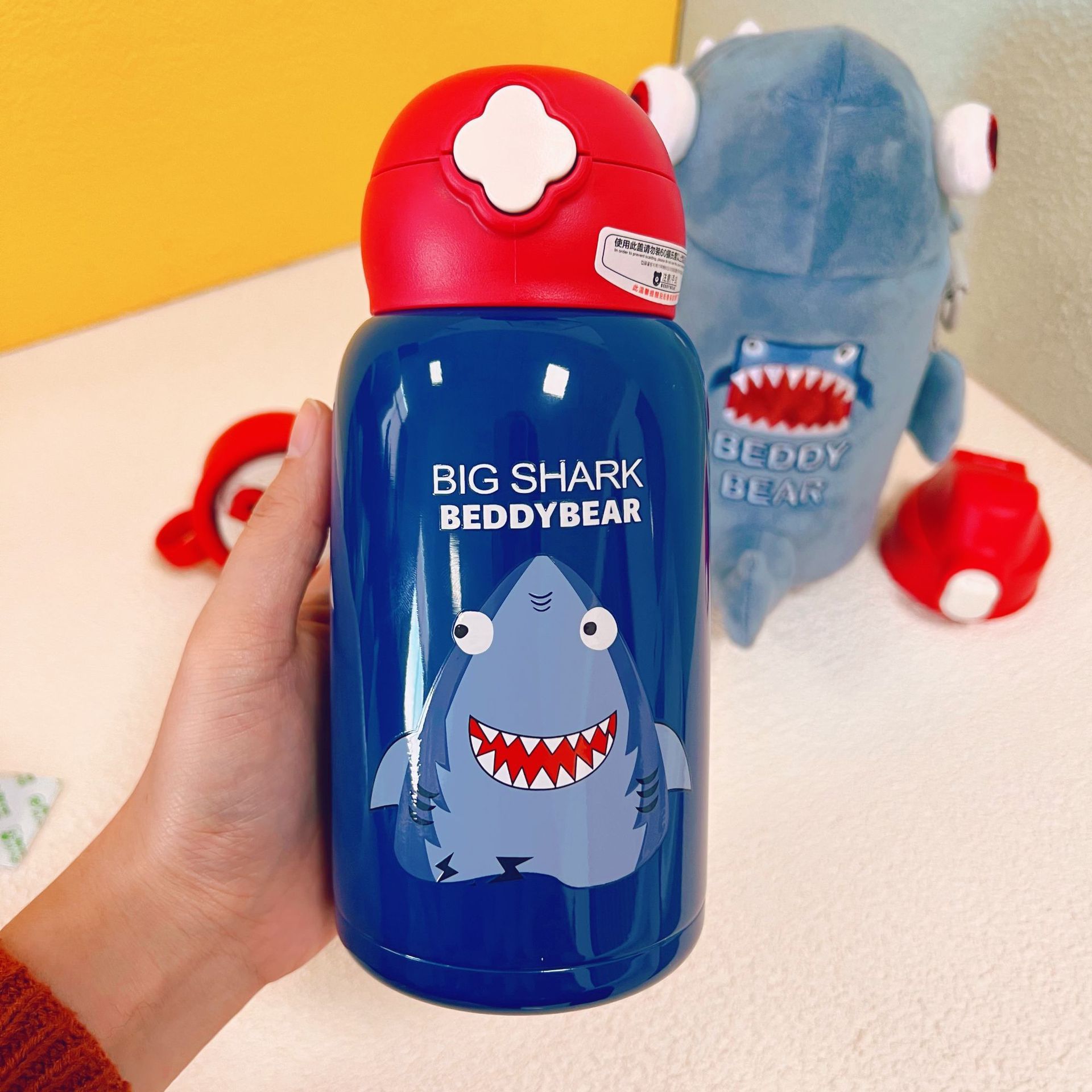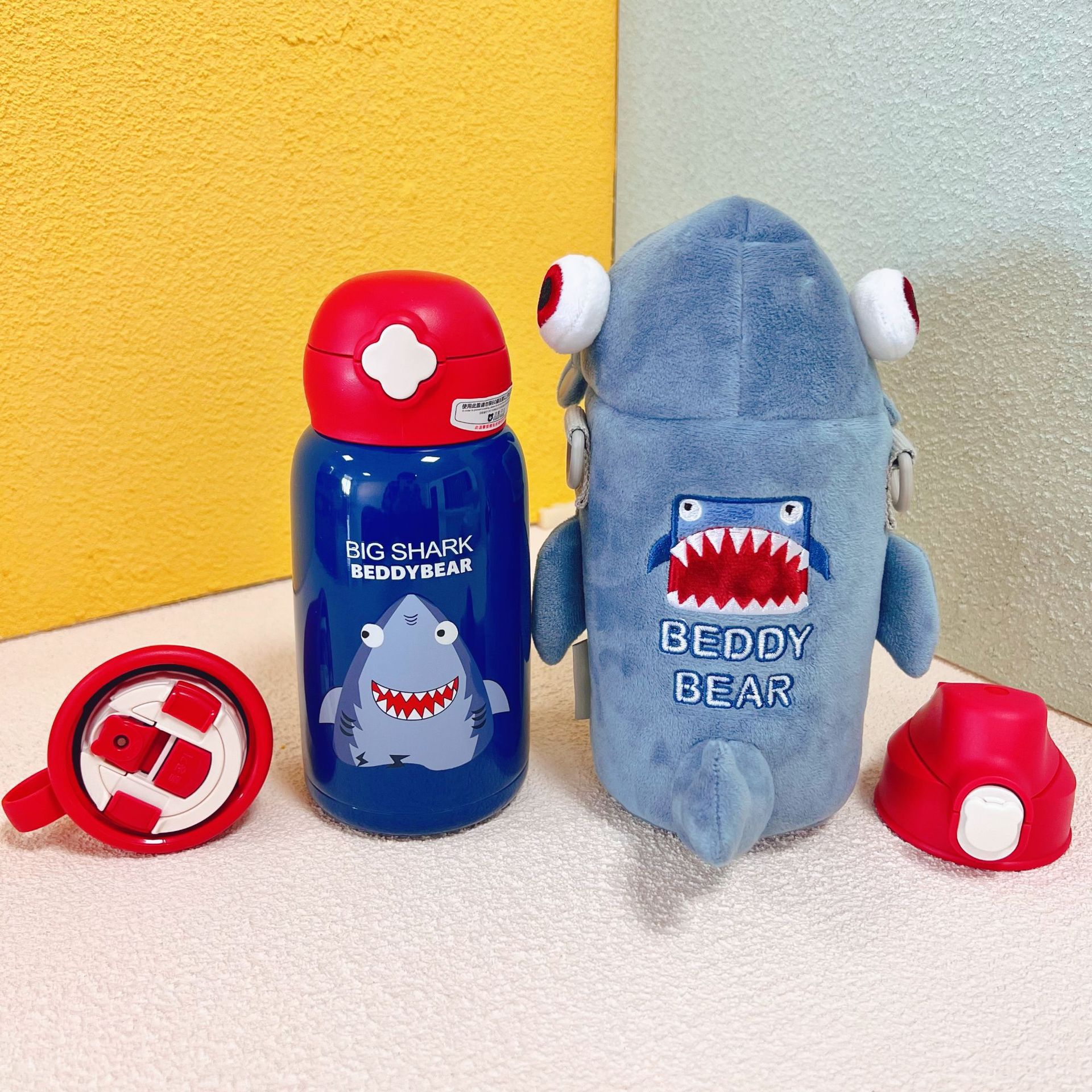 杯具熊四叶草毛绒儿童杯三盖保温杯带吸管可爱男女便携幼儿园水壶