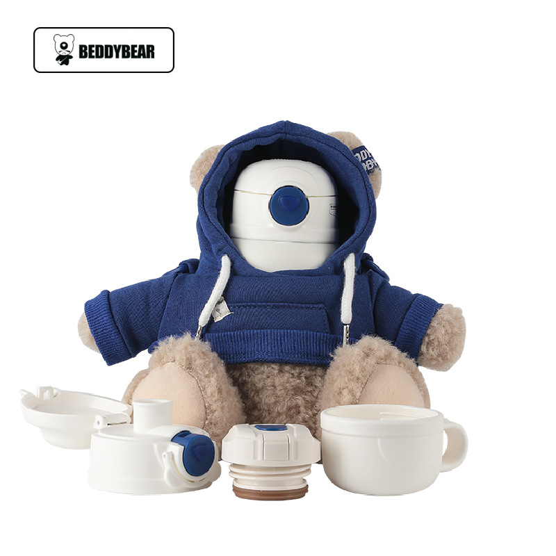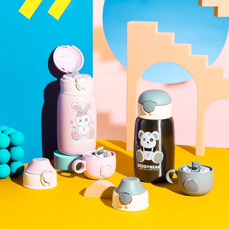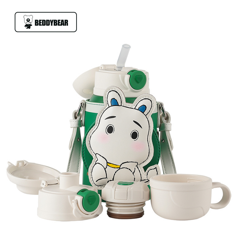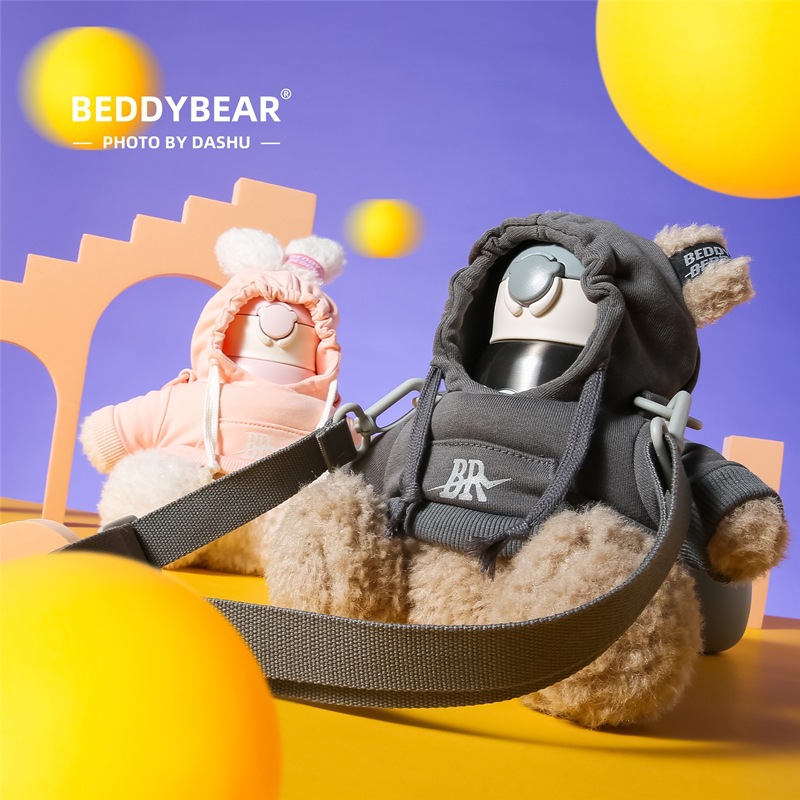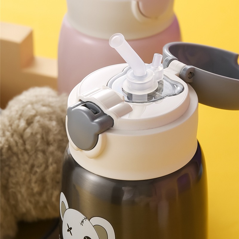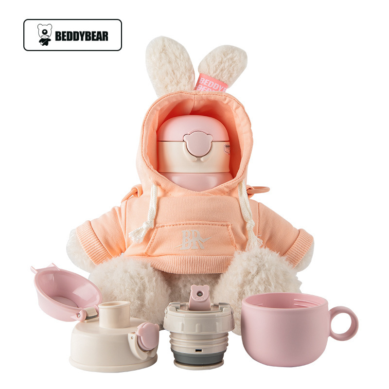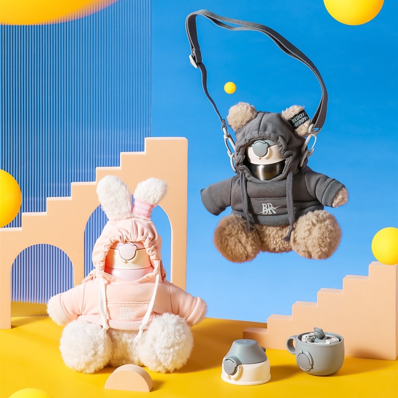 杯具熊儿童保温杯带吸管可爱毛绒杯套水壶小学生宝宝幼儿园水杯子