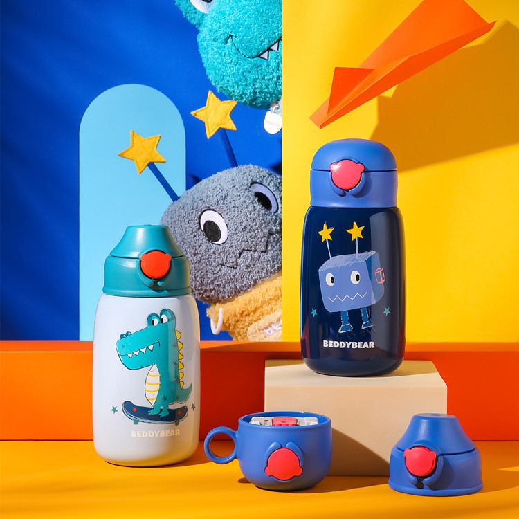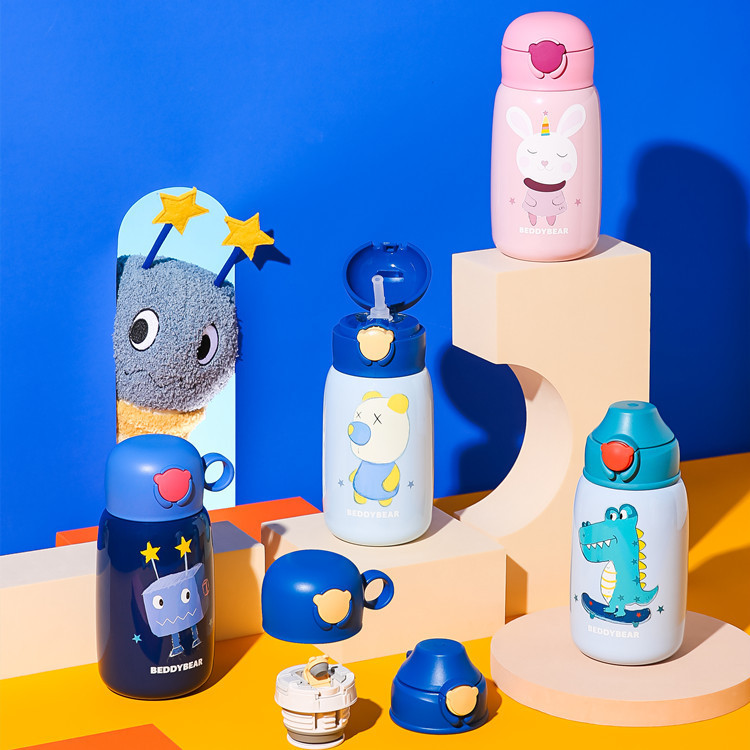 杯具熊3D熊抱毛绒系列儿童保温杯滑板鳄鱼水壶学生宝宝幼儿园水杯
