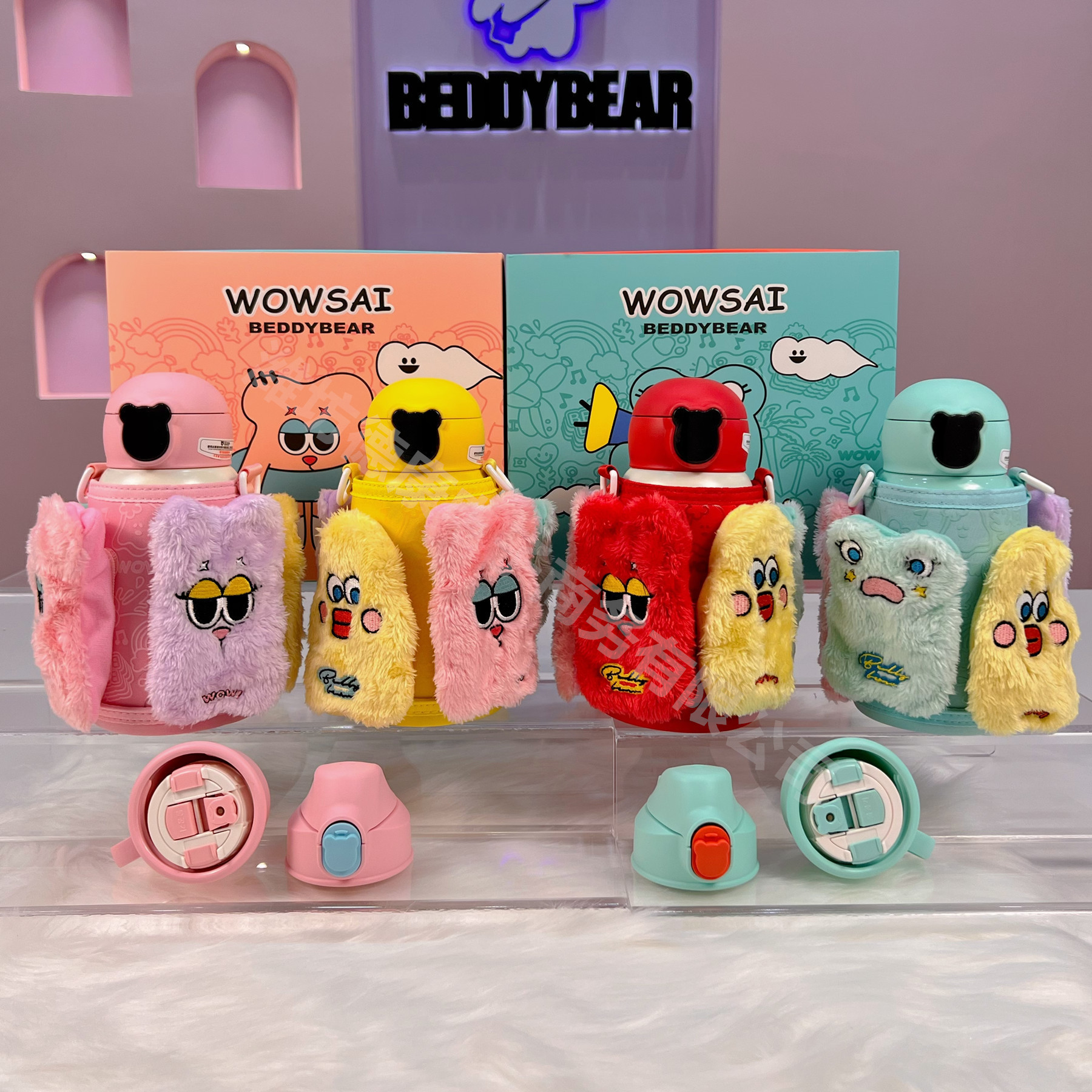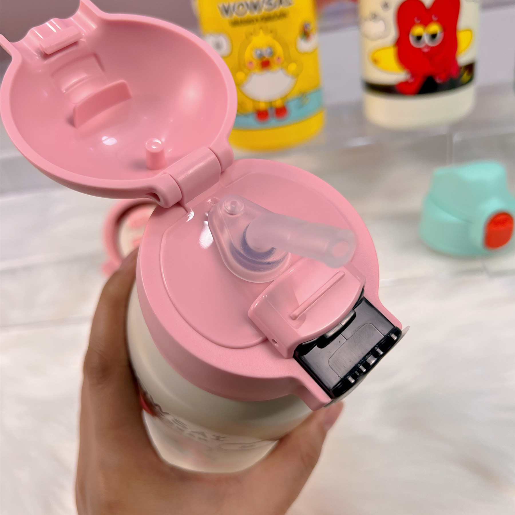 杯具熊糯米系列智能儿童学生壶630毫升户外郊游三盖水壶口袋设计