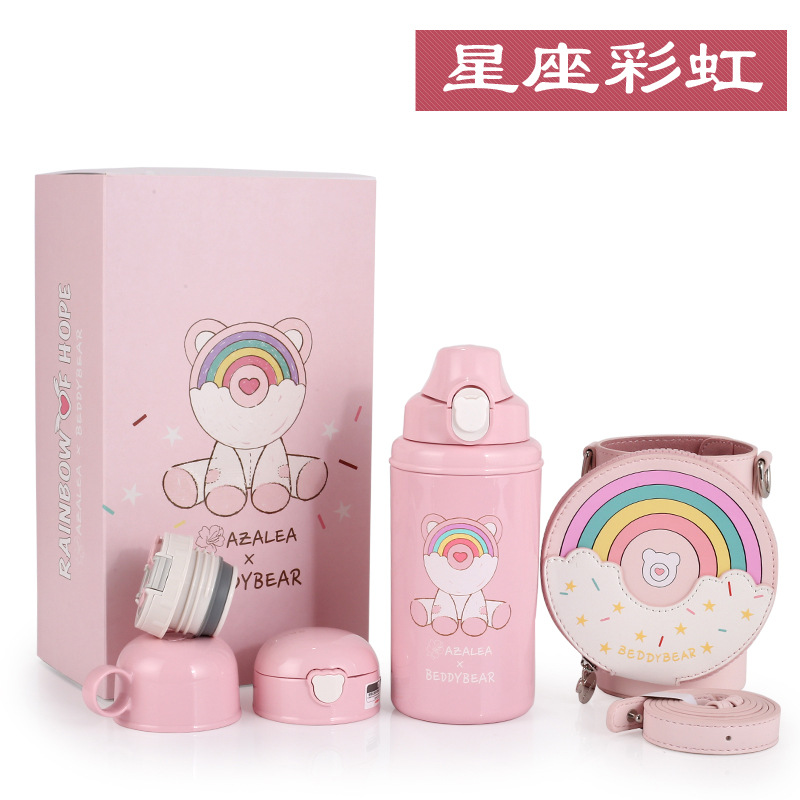 杯具熊皮套儿童保温杯带吸管水壶不锈钢大肚杯学生宝宝幼儿园水杯