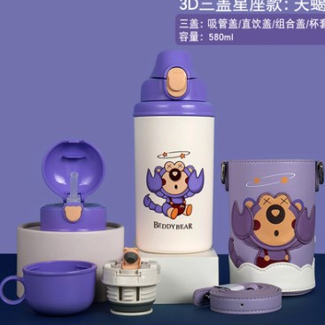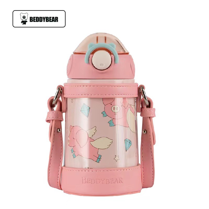 杯具熊豌豆儿童吸管保温杯高颜值女水杯男学生上学包包杯宝宝水壶