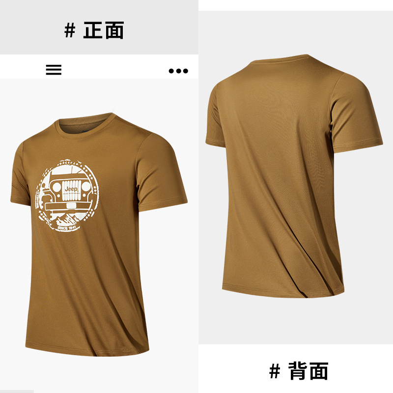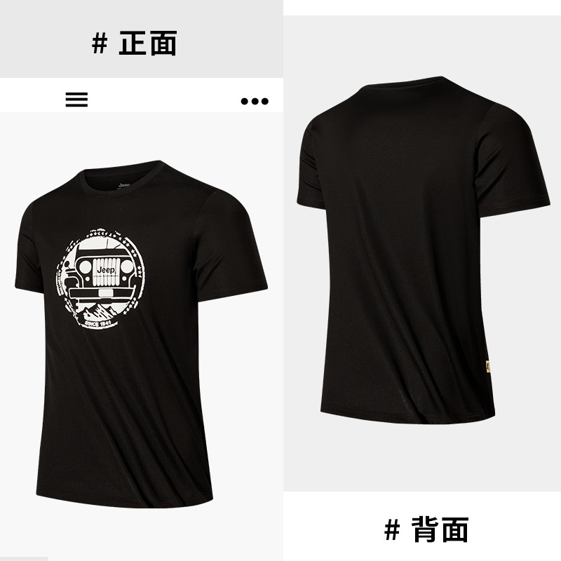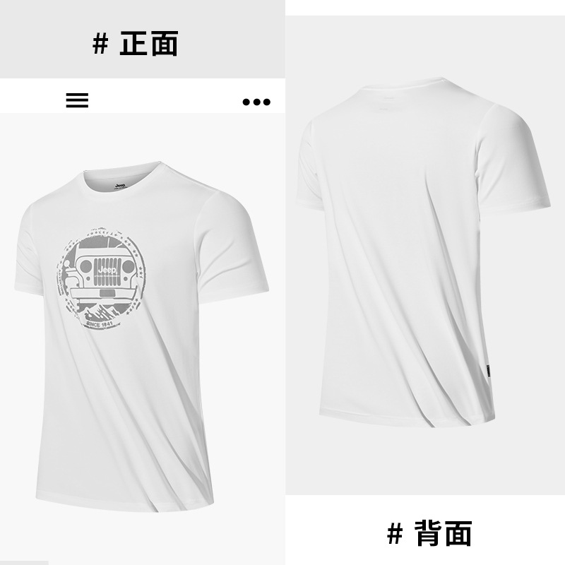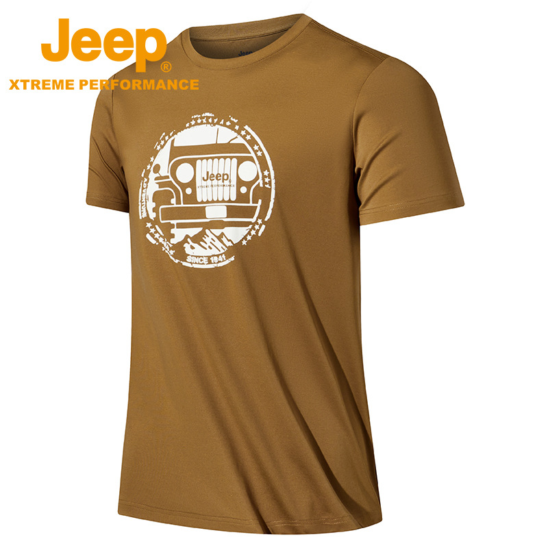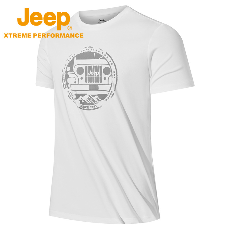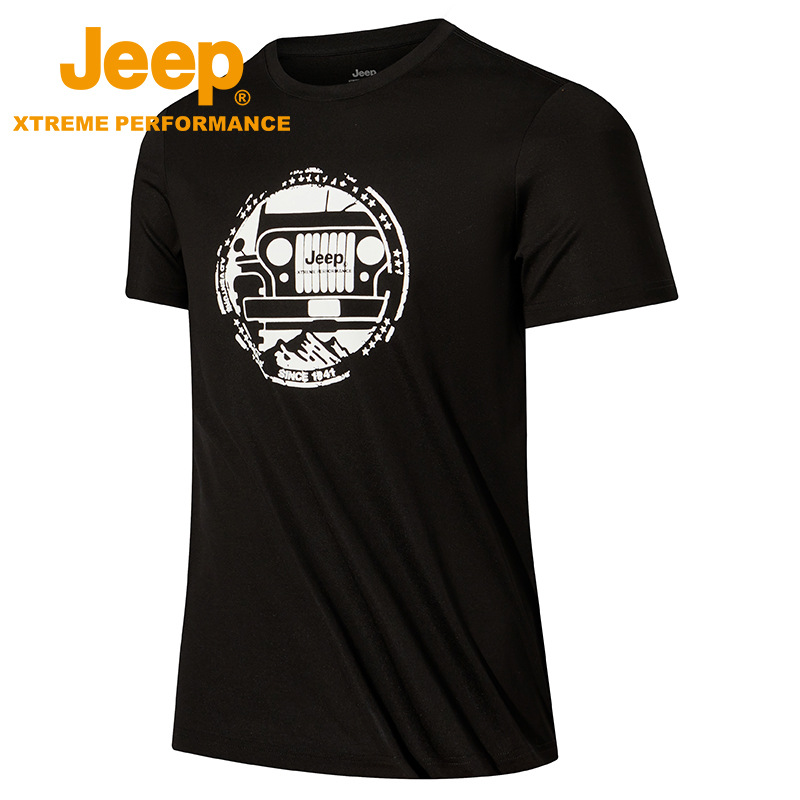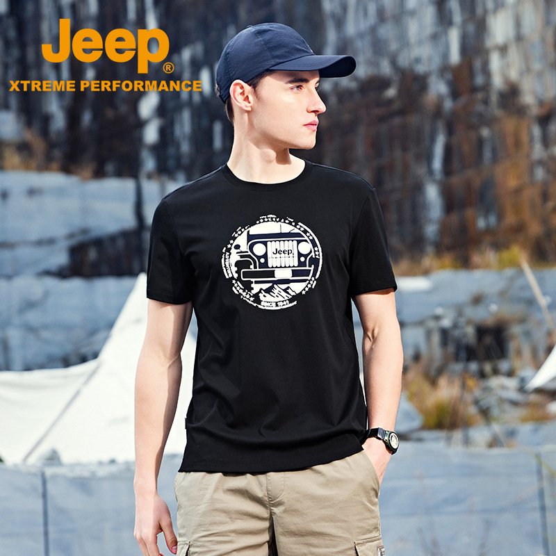 JEEP春夏新款t恤男士短袖宽松大码圆领夏季户外运动透气印花上衣 J322094512