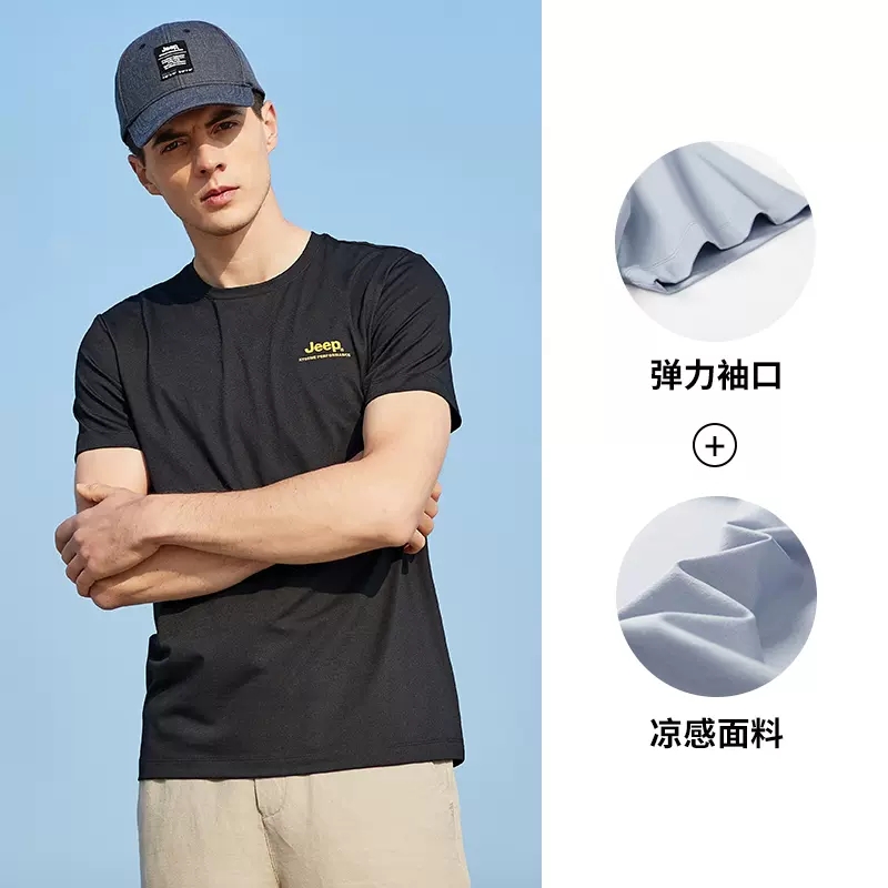 JEEP春夏新款速干衣男户外冰丝珠地短袖T恤运动排汗大码轻薄透气 J122094538