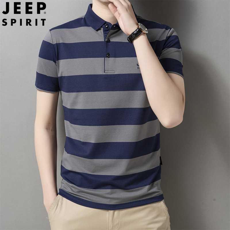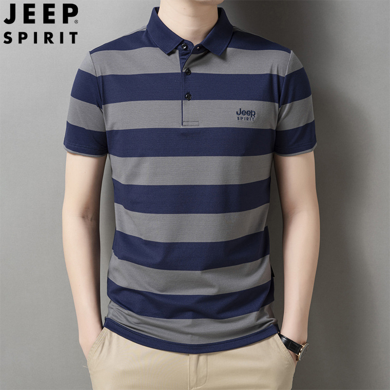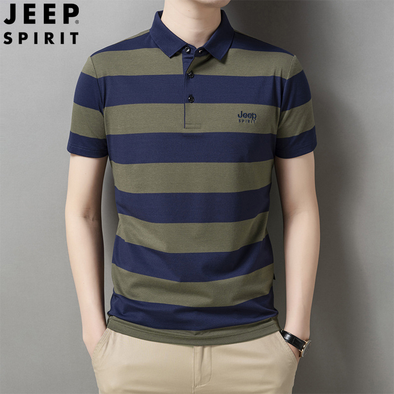 JEEP SPIRIT春夏新款中年短袖t恤男士夏季爸爸装条纹翻领休闲商务POLO衫 H-28951#