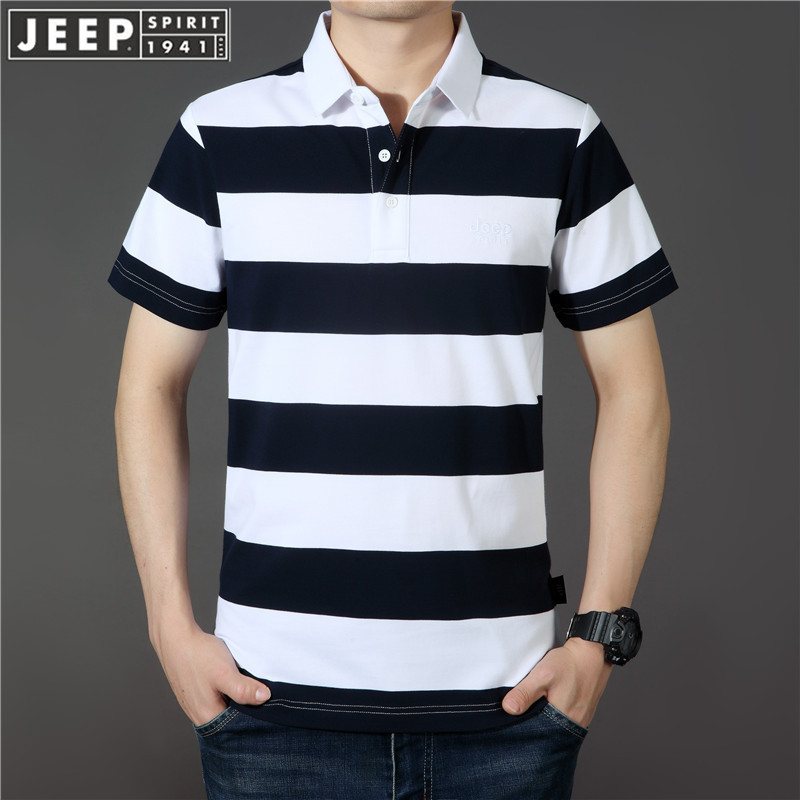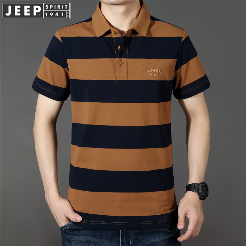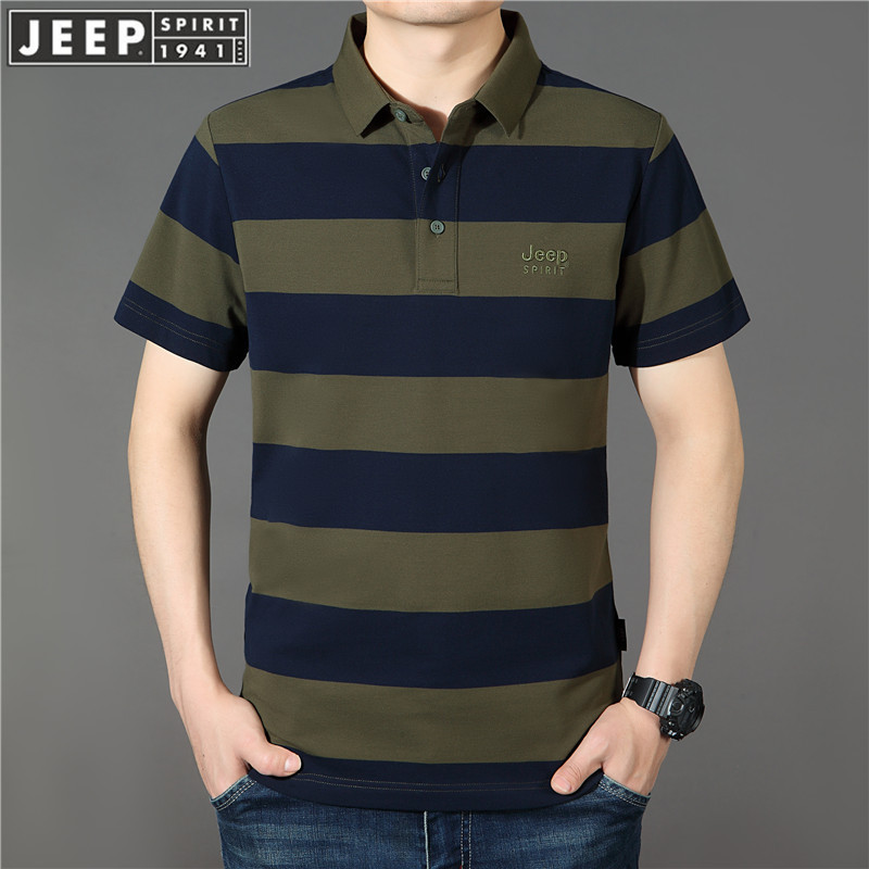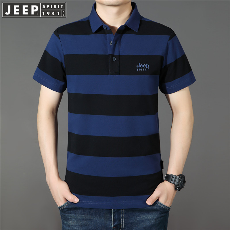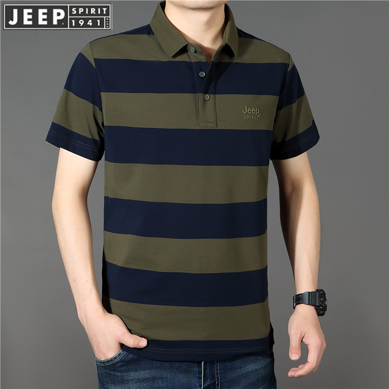 JEEP SPIRIT中年短袖t恤男士夏春夏新款大码宽松休闲翻领条纹半袖POLO衫 PS5218