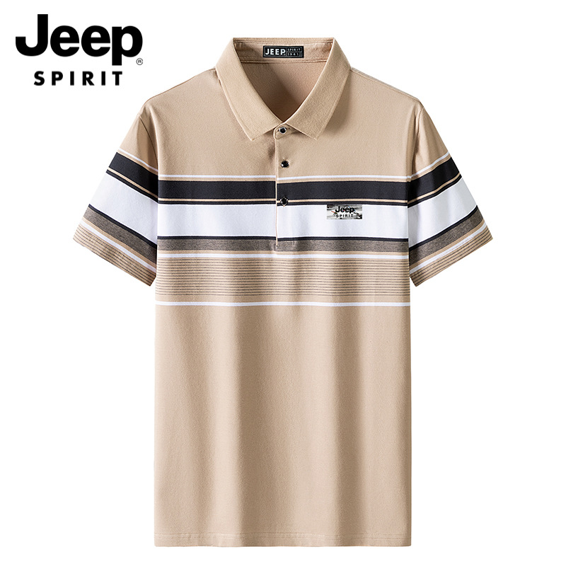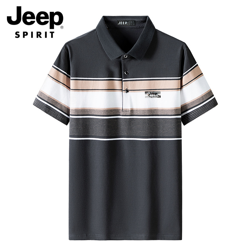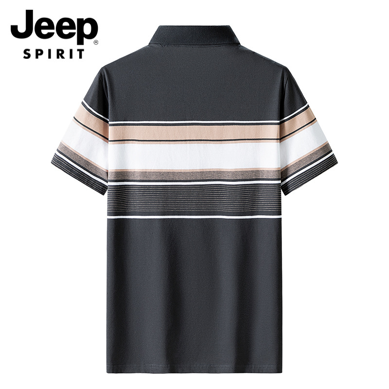JEEP SPIRIT春夏新款短袖男夏季透气翻领t恤成熟Polo衫条纹上衣中年男装 JP-Polo2338