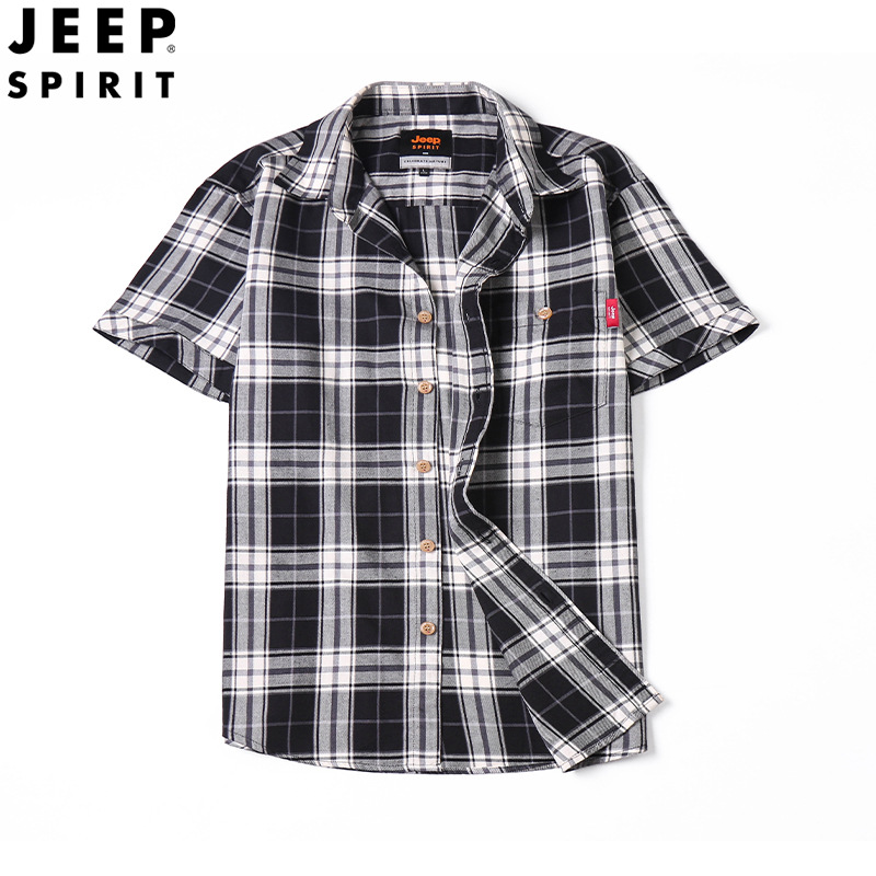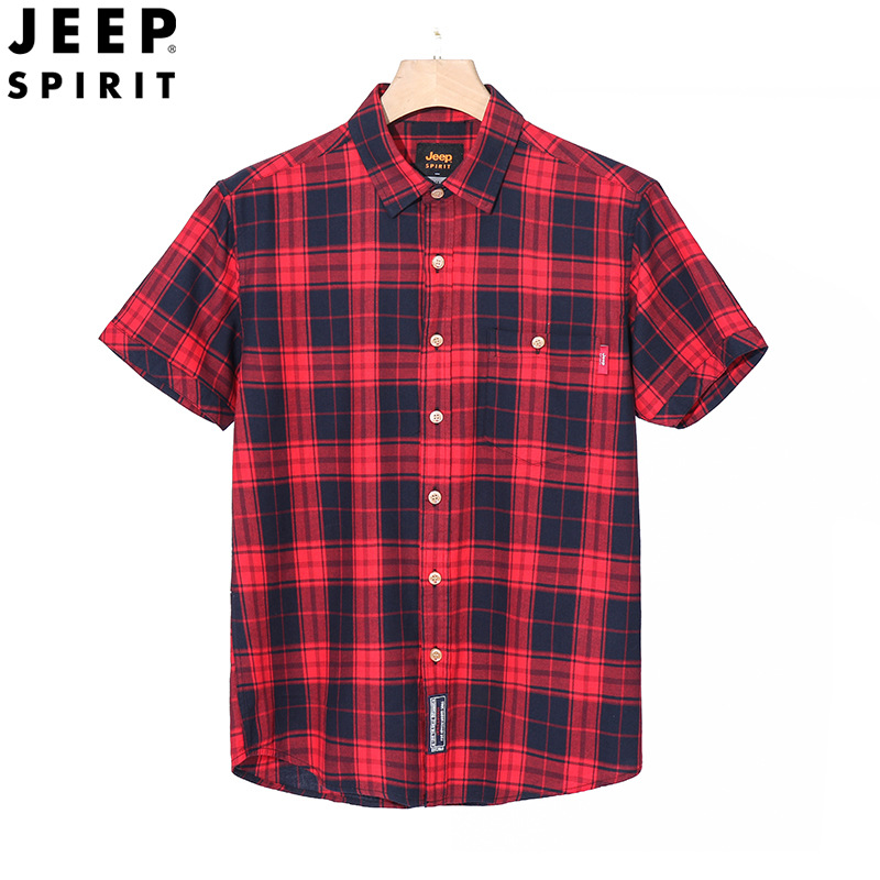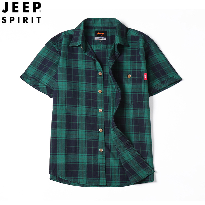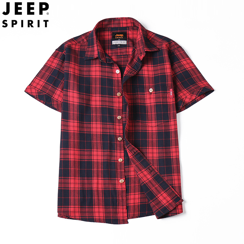JEEP SPIRIT春夏新款衬衫男夏季短袖薄款衬衣英伦风时尚格子大码长袖男士 H-2042