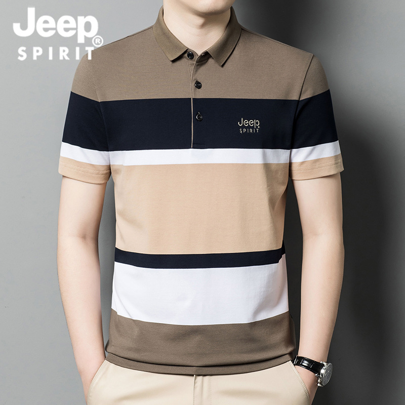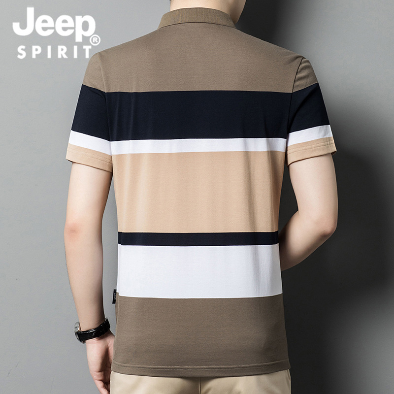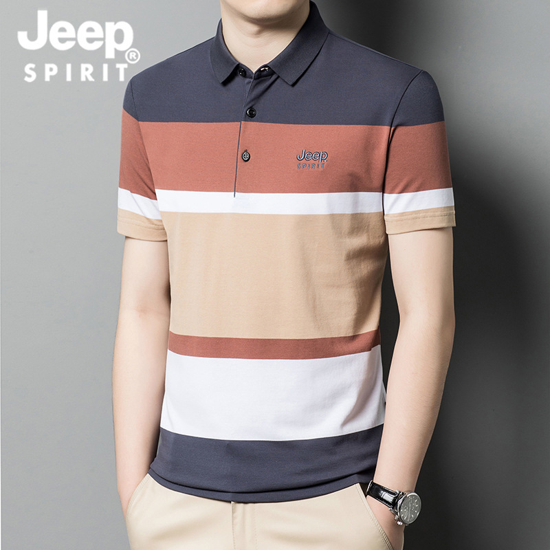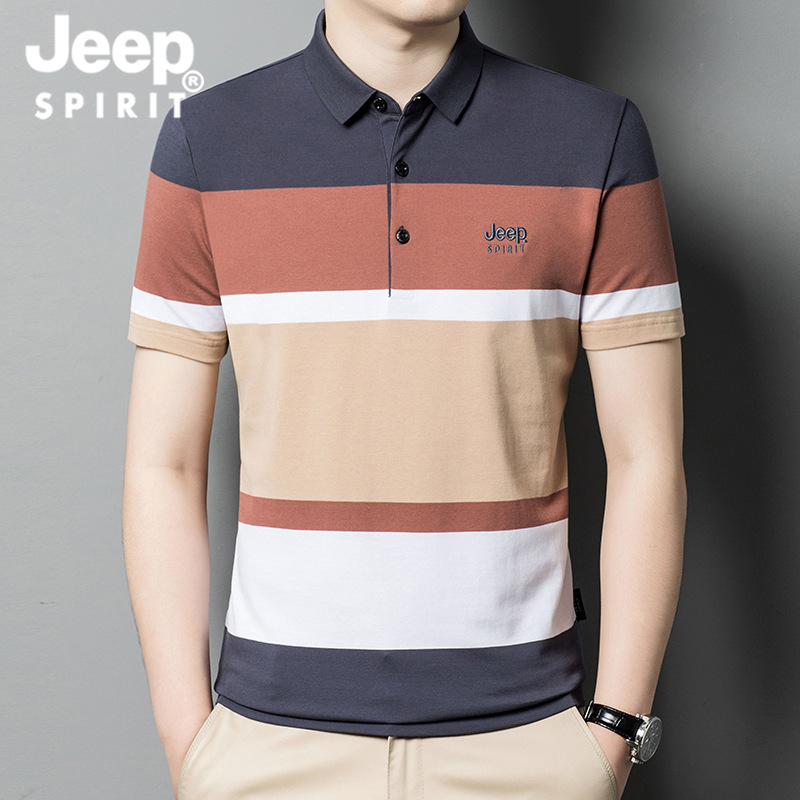 JEEP SPIRIT春夏新款翻领短袖T恤男士条纹POLO衫宽松休闲大码男装夏季 HB-T23648