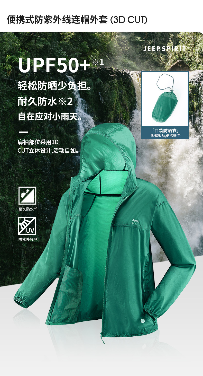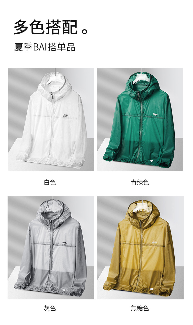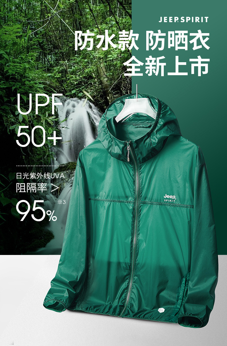 JEEP SPIRIT夏季新款防晒衣男透气轻薄皮肤衣钓鱼户外旅行防晒衣时尚潮流 J075P1705#