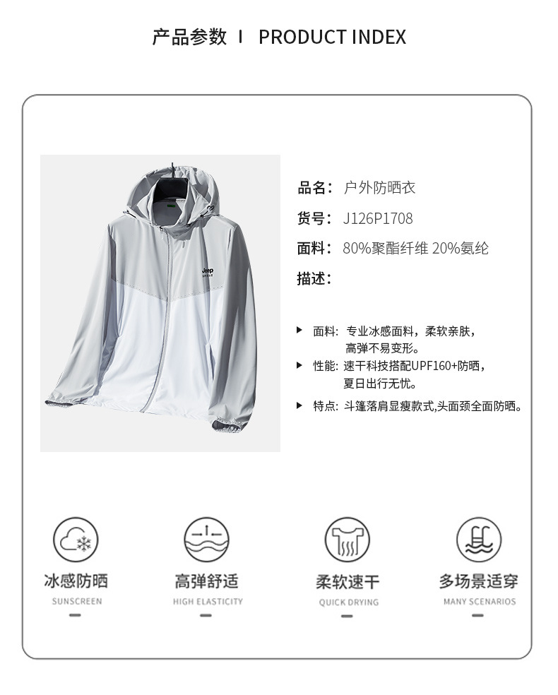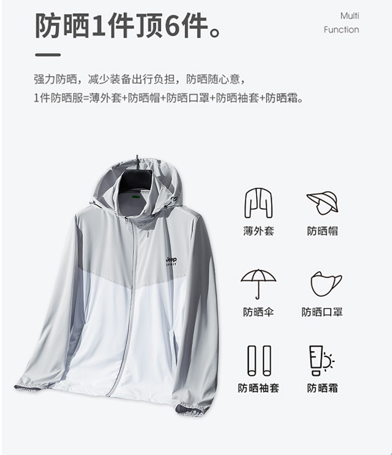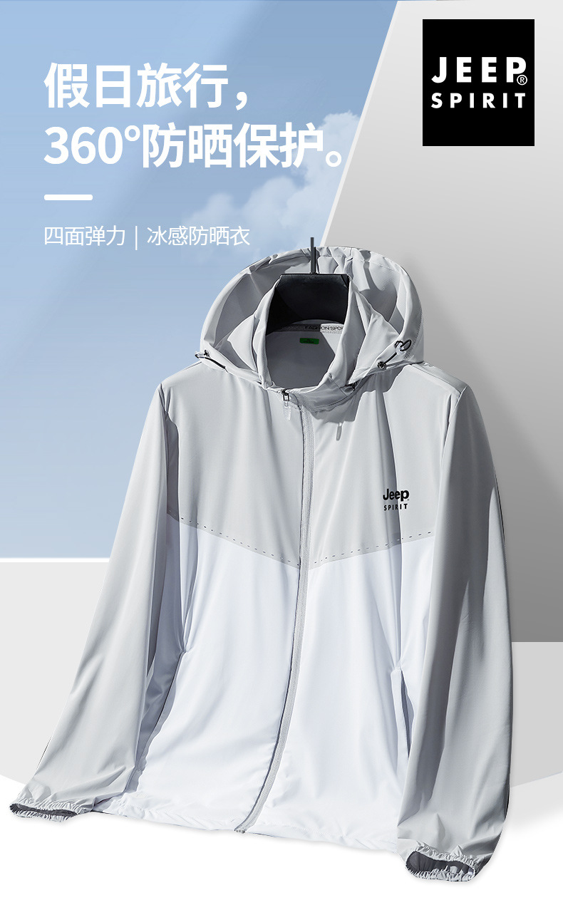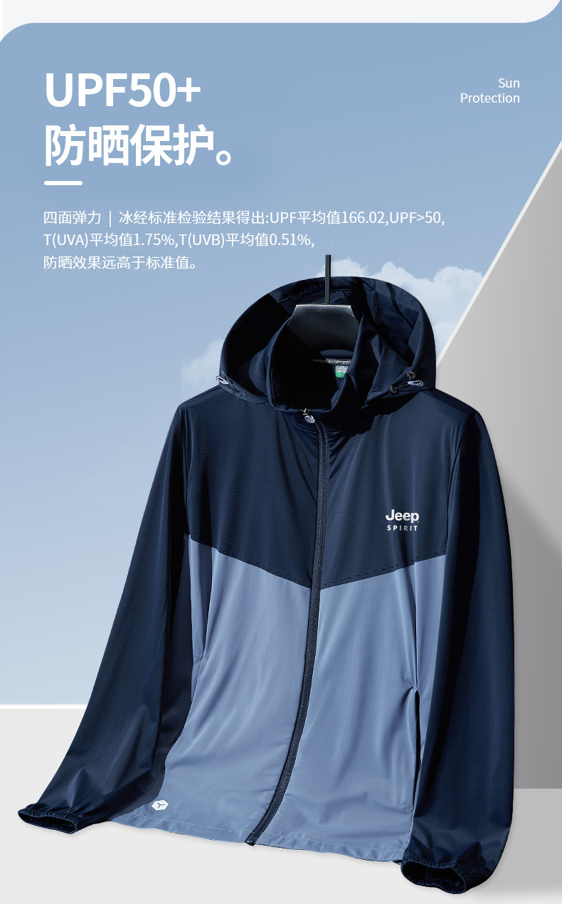 JEEP SPIRIT夏季新款冰丝防晒服皮肤衣外套薄款透气潮流男 J126P1708#