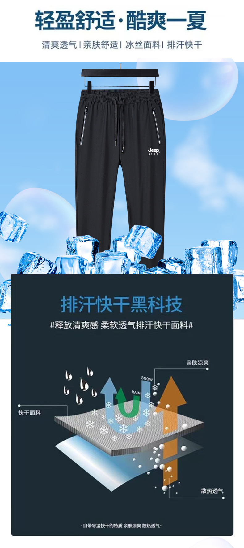 服饰配饰>男装>运动裤> JEEP SPIRIT夏季新款冰丝弹力潮流运动长裤薄款宽松跑步登山男裤 JP6340